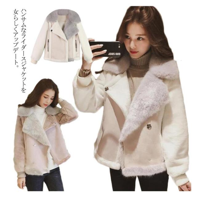 ムートン ジャケット ライダースコート ムートンコート レディース フェイクファー付き ボア アウター ライダースジャケット ボアジャケット ミックス ムートンジャケット ミセス