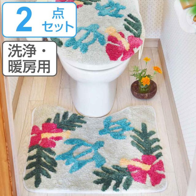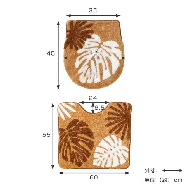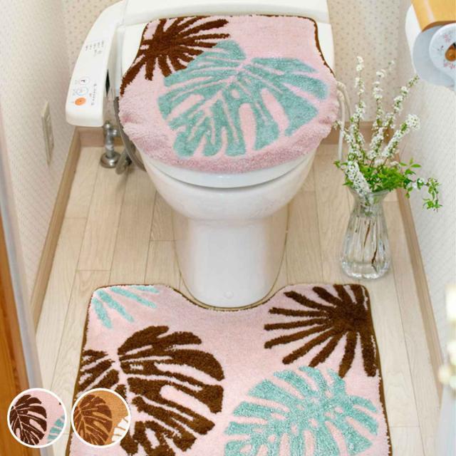 トイレマット 蓋カバー セット サザンリーフ ( 蓋 フタ カバー トイレ ふたカバー トイレタリー トイレカバ— 速乾 マット モンステラ 2点セット )