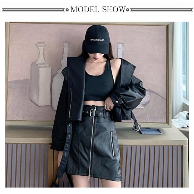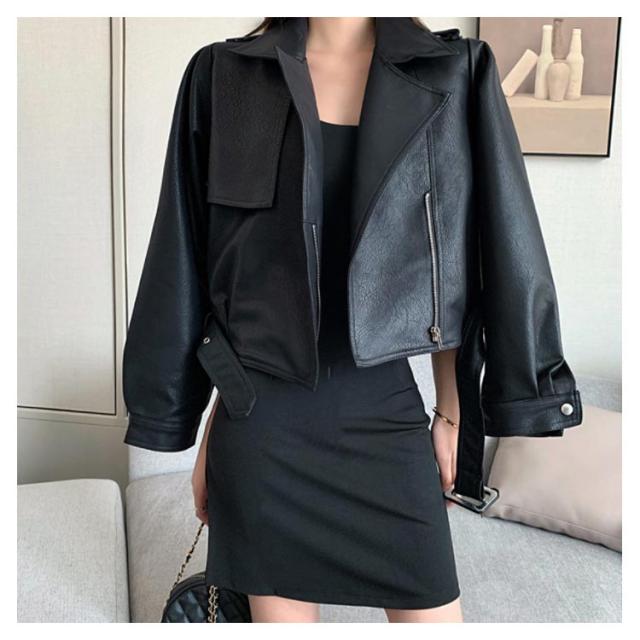 ライダースジャケット PUレザー レザージャケット レディース ジャンパー ブルゾン アウター 秋 冬 春 甘辛コーデ かっこいい ゆったり ベルト付き オーバーサイズ ショート丈 フェイクレザー ジャケット