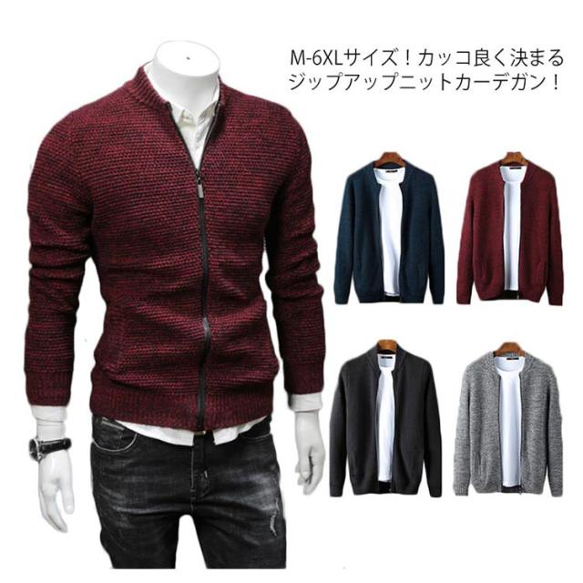 《送料無料》M-6XLサイズ!ニットパーカー メンズ ニットジャケット 立ち襟 ニットカーディガン ジップアップ パーカー ジャケット ブルゾン スリム アウター 秋 大きサイズ