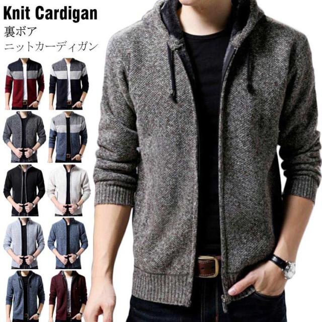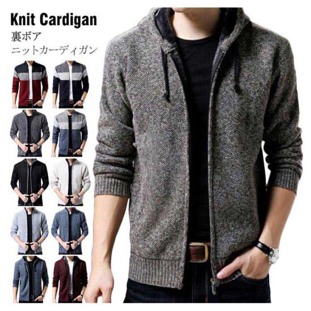 裏ボア コート メンズ 裏ボア カーディガン ニットカーディガン ジップアップ パーカー パーカ 秋冬 ライトアウター ストリート アメカジ