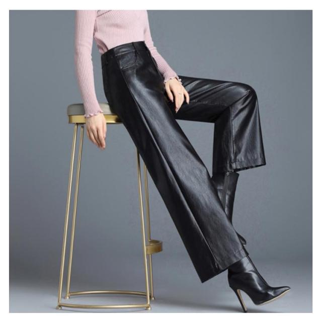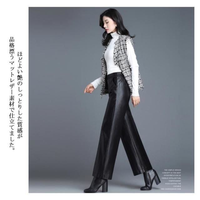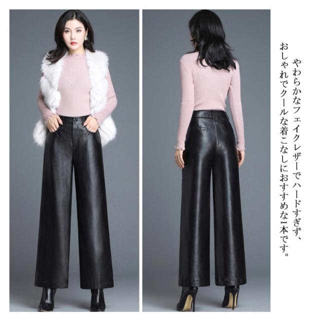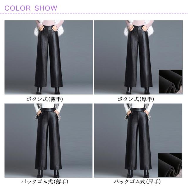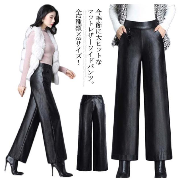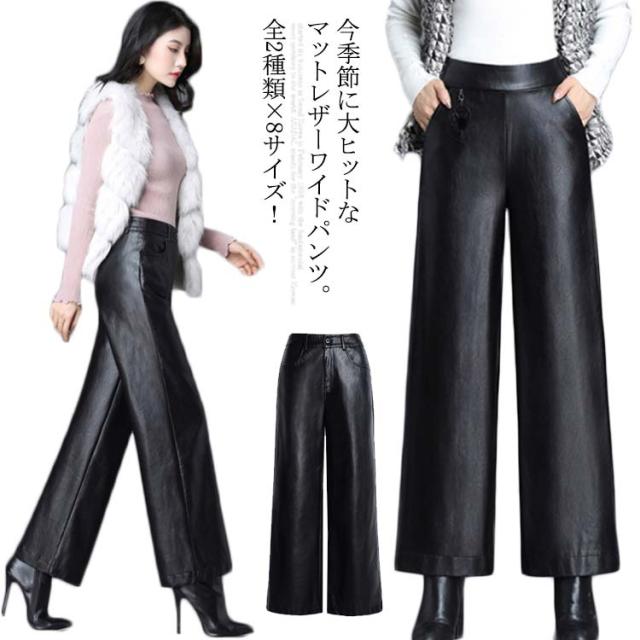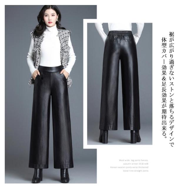 全2種類×8サイズ!レザーワイドパンツ ワイドパンツ 秋冬 ロングパンツ レザーパンツ ワイド ガウチョパンツ レザー フェイクレザー PU 裏起毛 暖かい ボトムス 体型カバー 通勤 カジュアル キレイめ