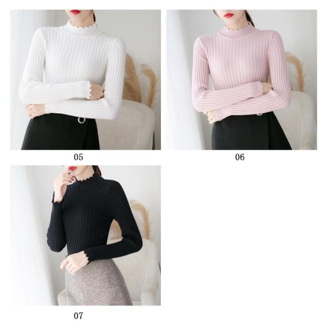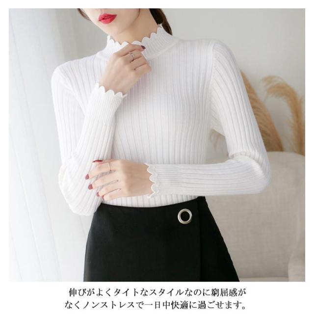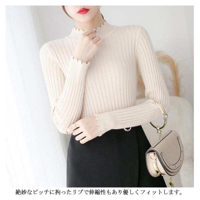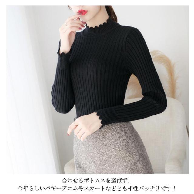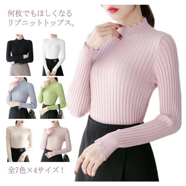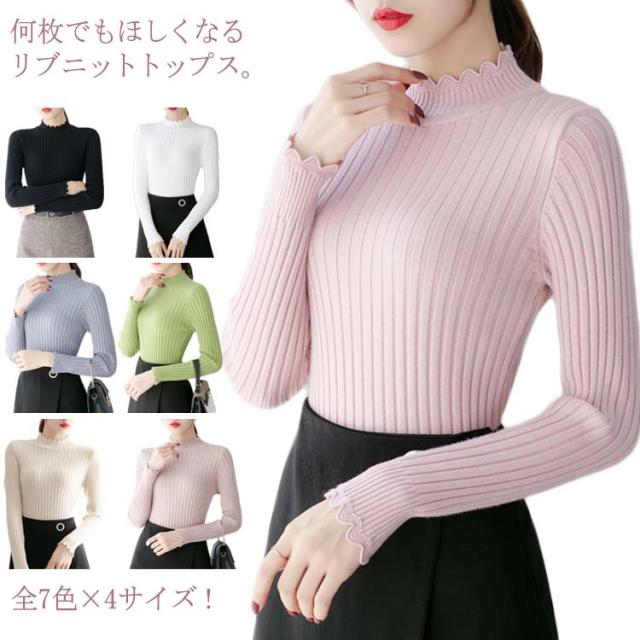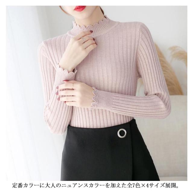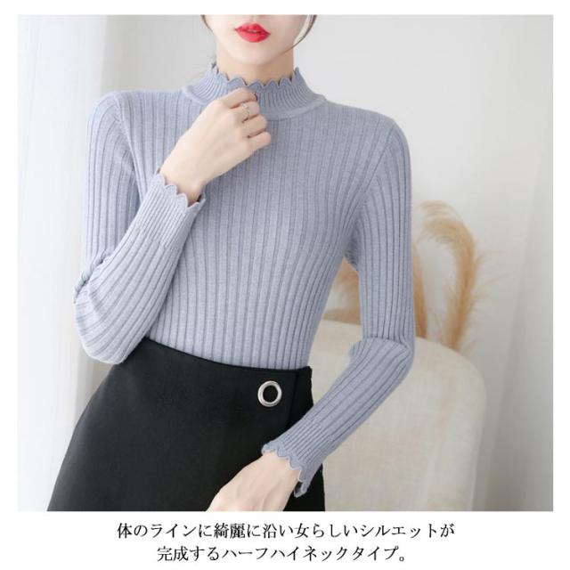 全7色×4サイズ!ニットセーター レディース ニット トップス ハーフハイネック リブニット プルオーバー タイト 無地ニット コンパクト 秋 秋冬