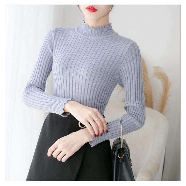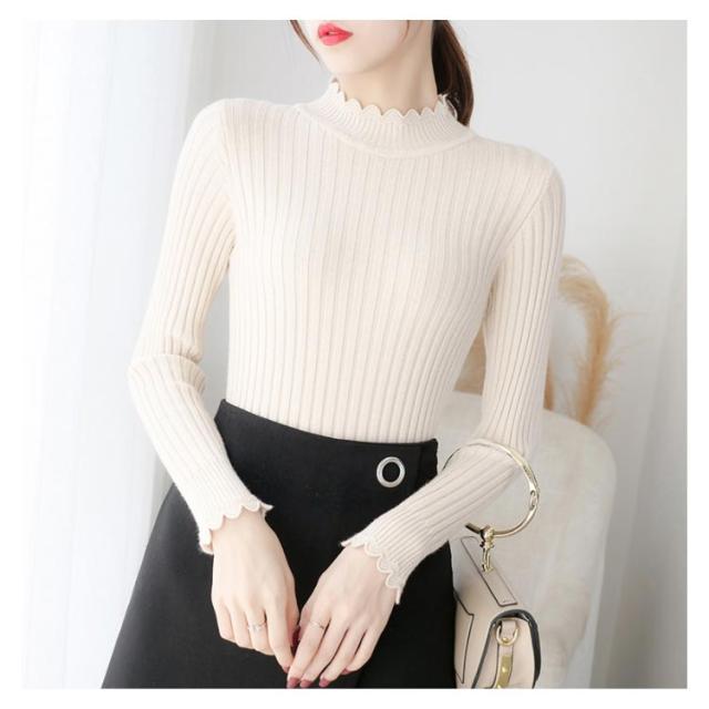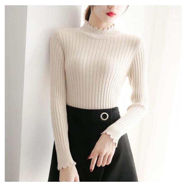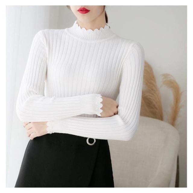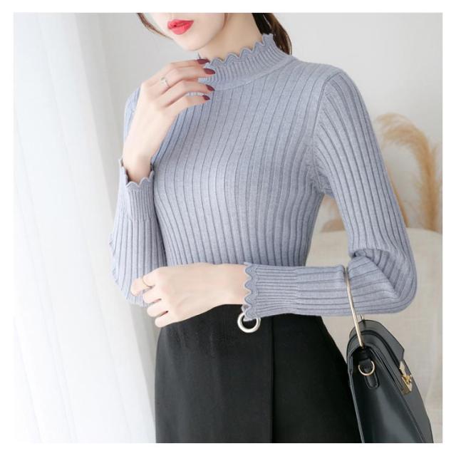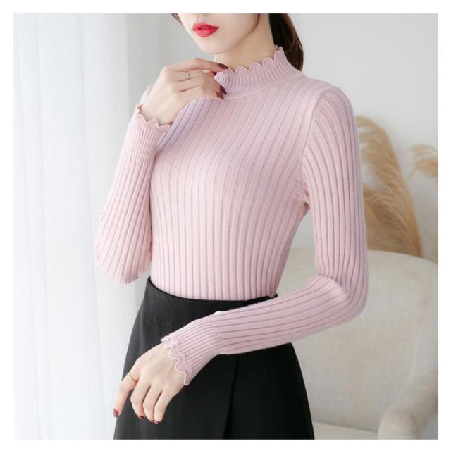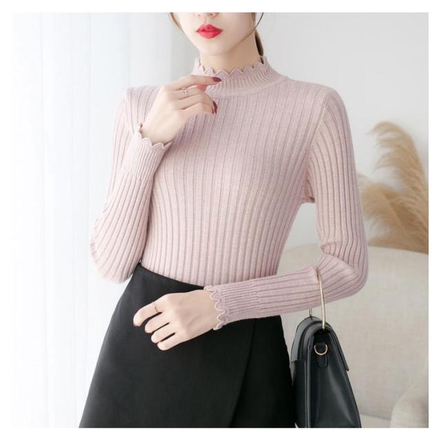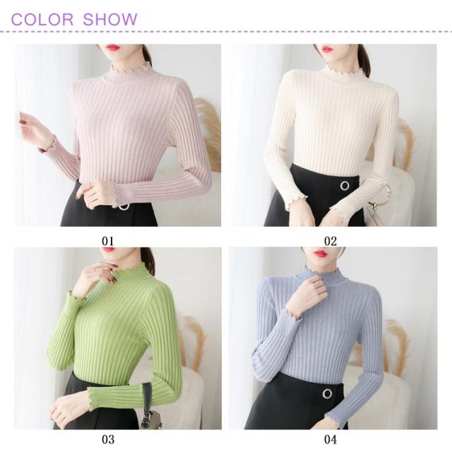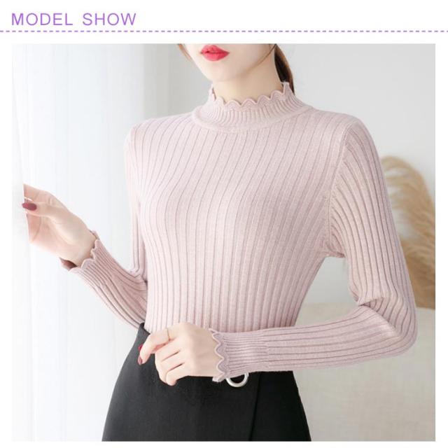 全7色×4サイズ!ニットセーター レディース ニット トップス ハーフハイネック リブニット プルオーバー タイト 無地ニット コンパクト 秋 秋冬