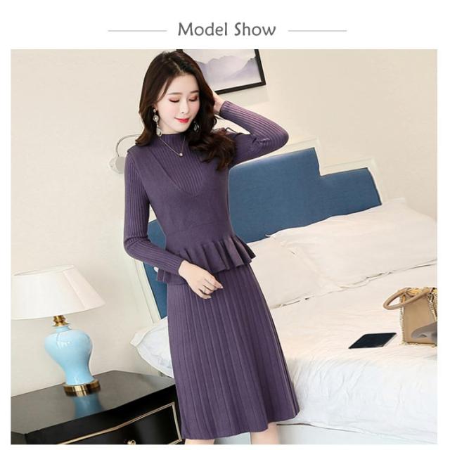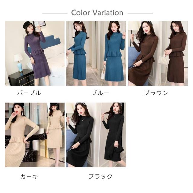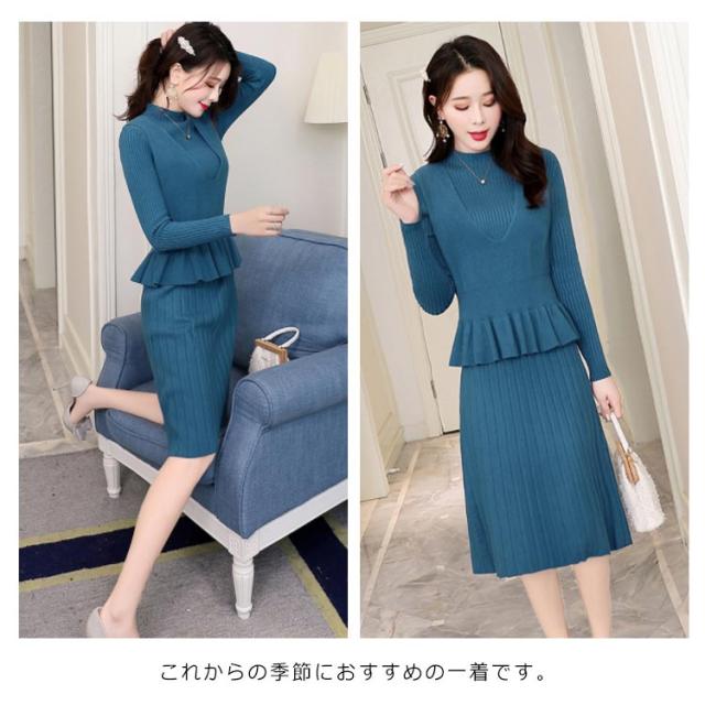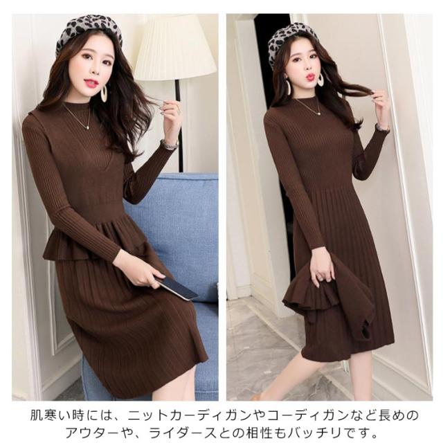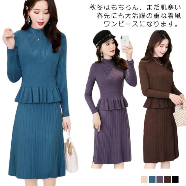 ニットワンピース 重ね着風ワンピース フレアワンピース Aラインワンピース 2点セット ニットベスト 膝丈 長袖 ハイウエスト プリーツスカート レディース フェミニン 通勤 新作