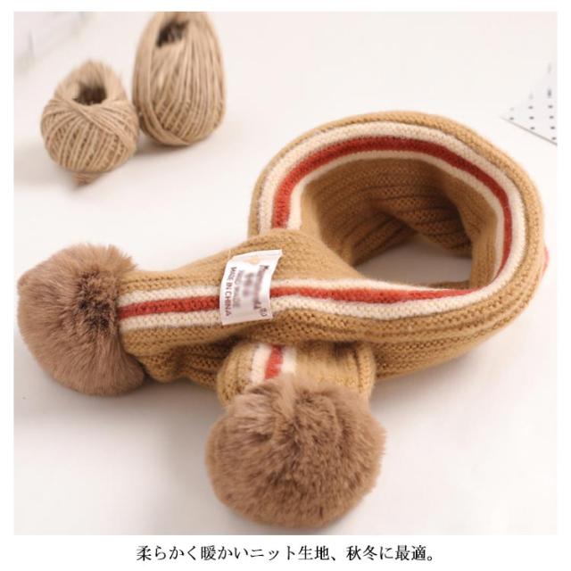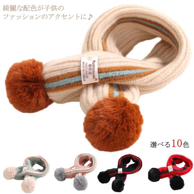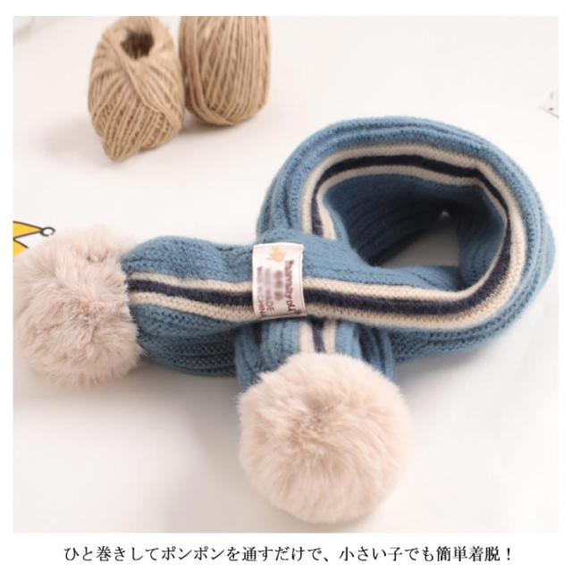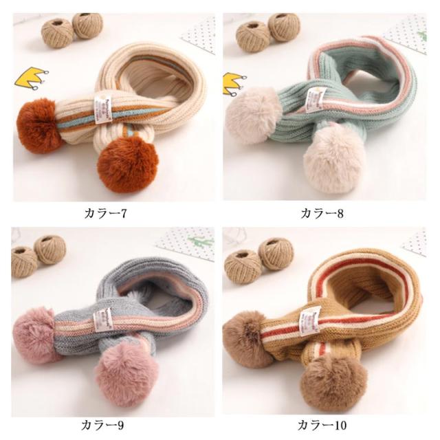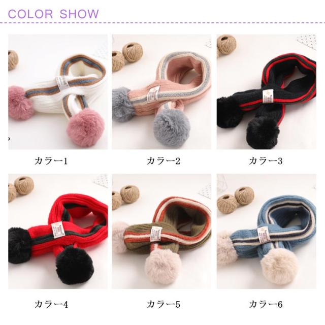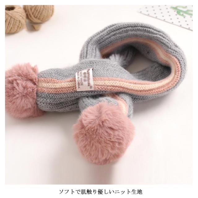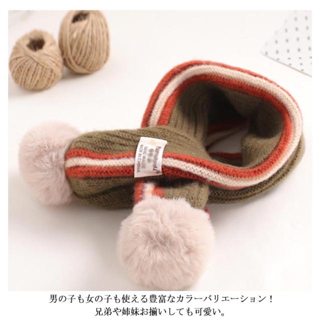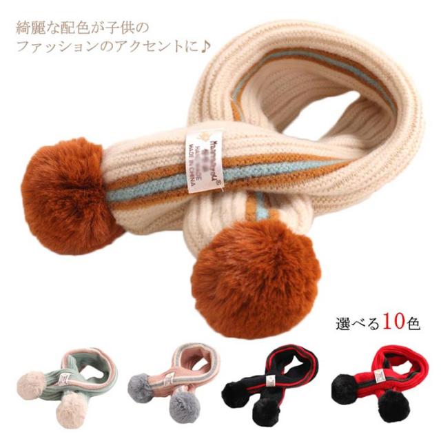 マフラー フェイクファー ポンポン付き ストール 子供 配色 色切替 ニットマフラー スヌード ユニセックス 男の子 女の子 キッズ ベビー 赤ちゃん あったか 防寒 秋冬 ネックウォーマー 厚手 通学 通園 子供マフラー