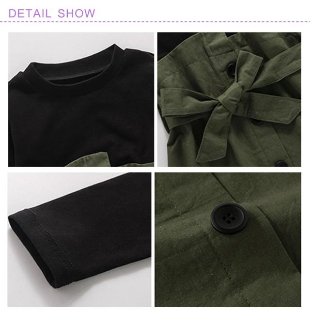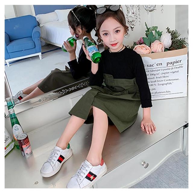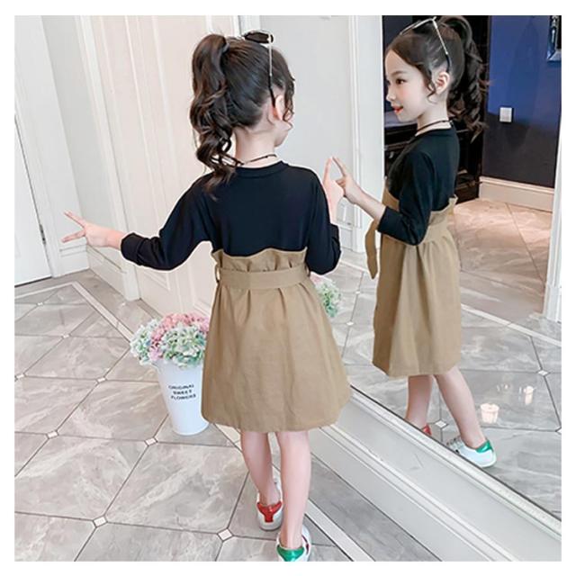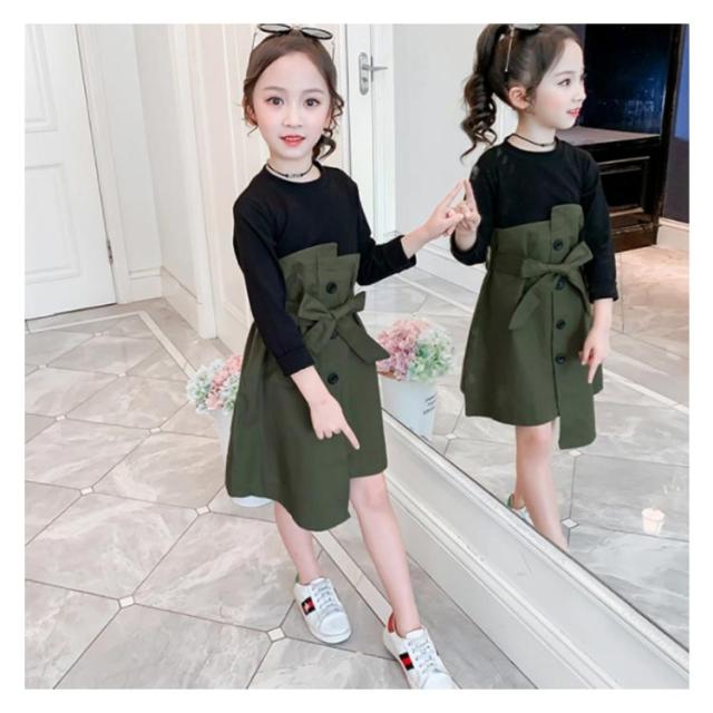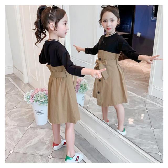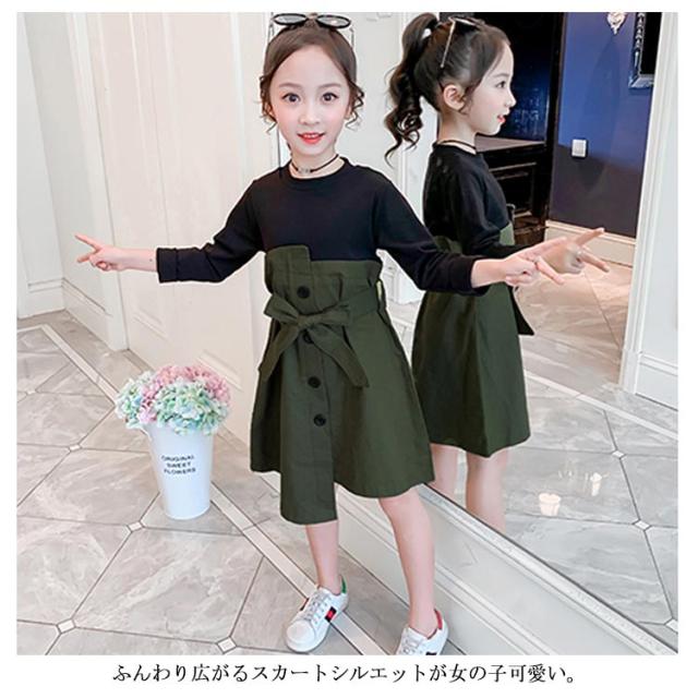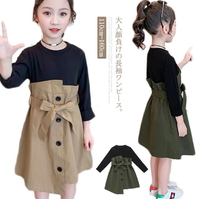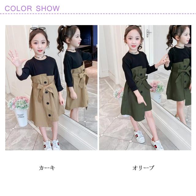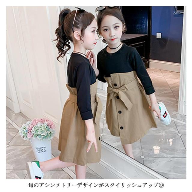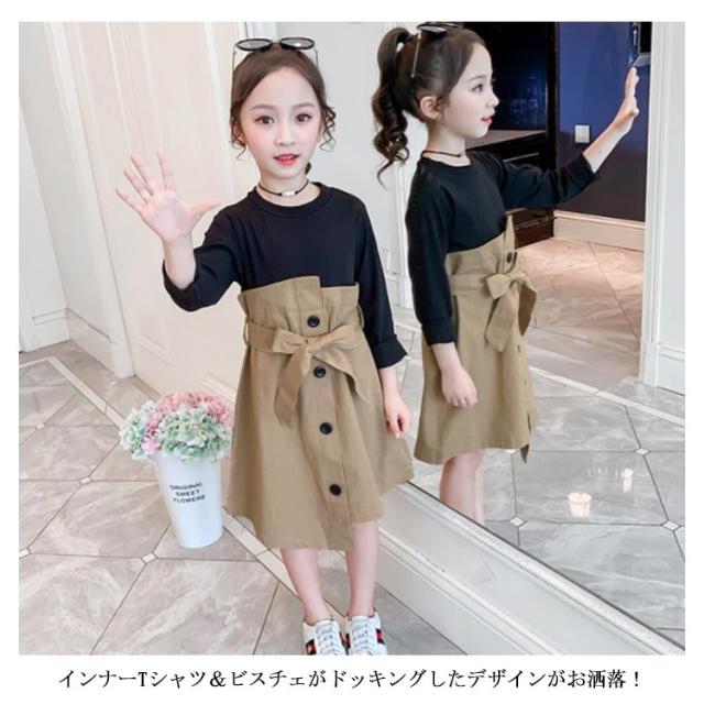 ワンピース ドッキングワンピース 重ね着風 アンサンブルワンピース フェイクレイヤード 女の子 キッズ リボン ベルト ワンピース 女児 春 秋 カジュアル オシャレ お出かけ 通学 通園 普段着 110cm 120cm 130cm 140cm 150cm 160cm