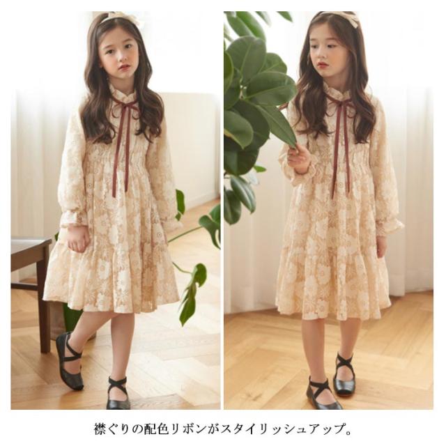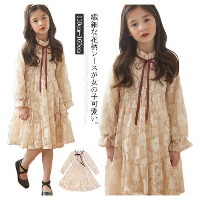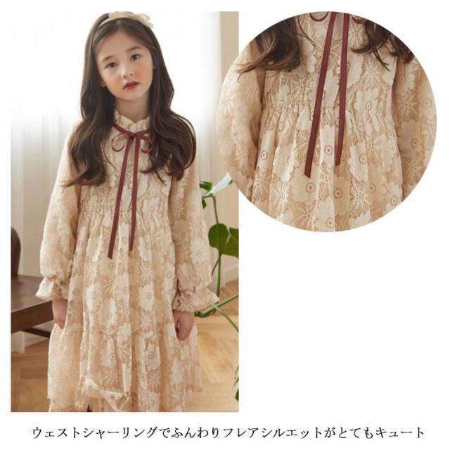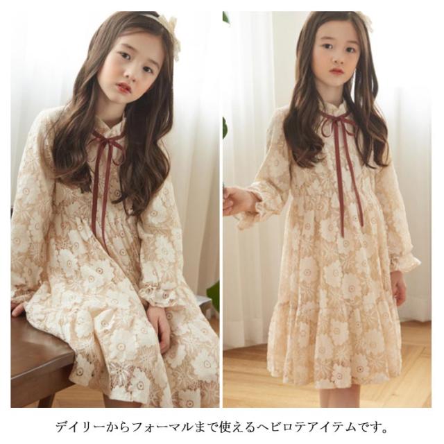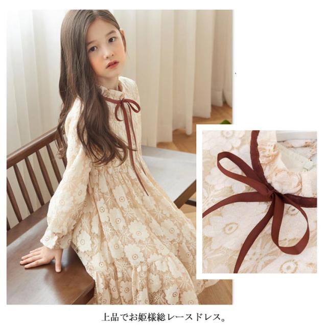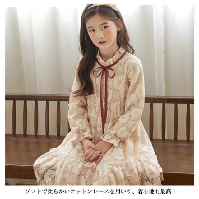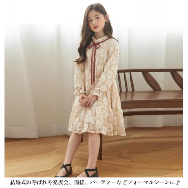 総レース ドレス 子供ワンピース 長袖 子供ドレス フリル 花柄レース お姫様 フレアワンピース レースワンピース 可愛い 女の子 キッズ フォーマル 発表会 七五三 結婚式 園式 卒園式 パーティー リボン