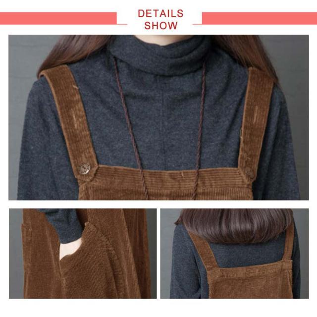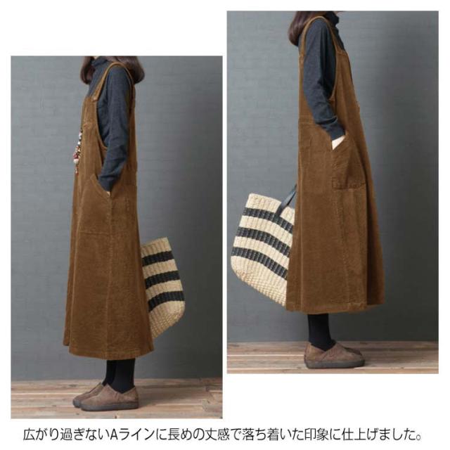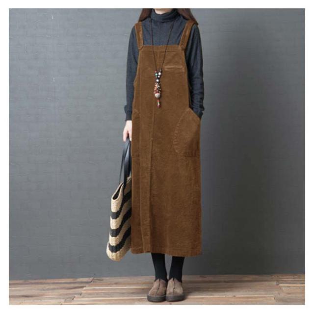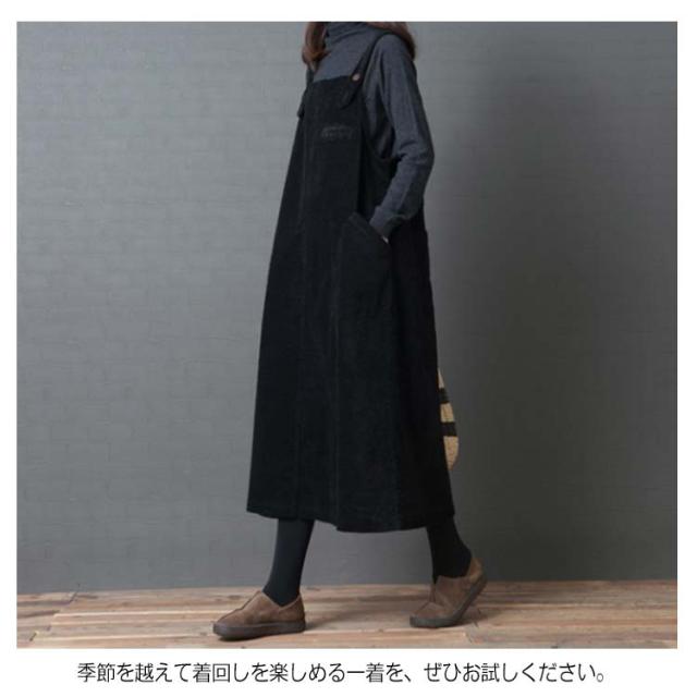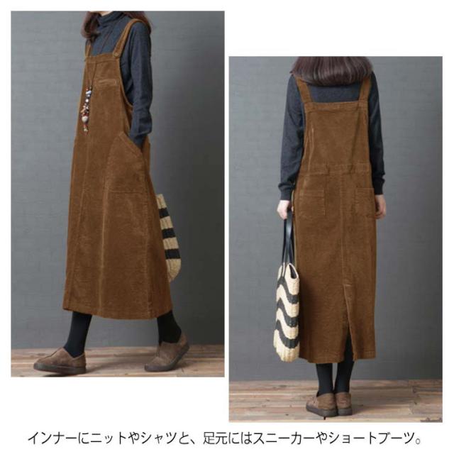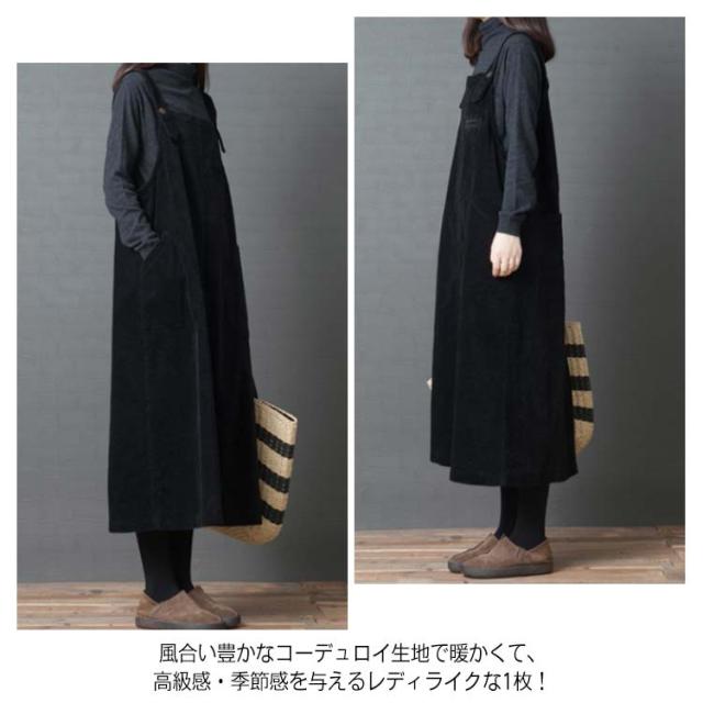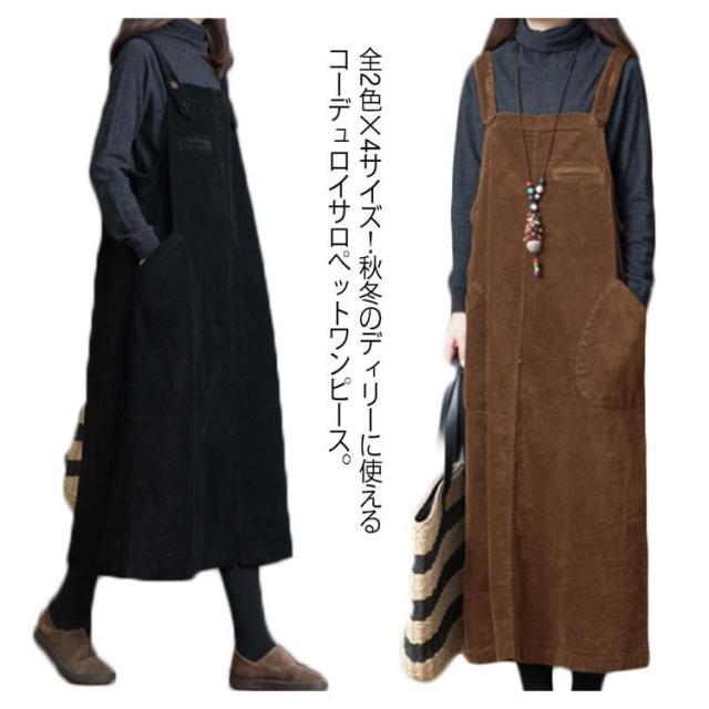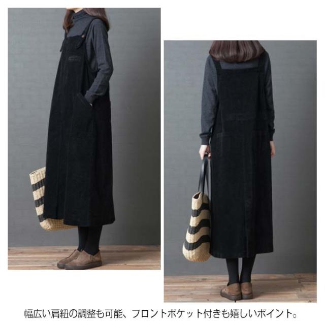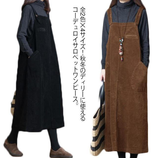 全2色×4サイズ!ワンピース サロペット オールインワン サロペットワンピース コーデュロイ ロング丈 ゆったり カジュアル シンプル 無地 秋冬