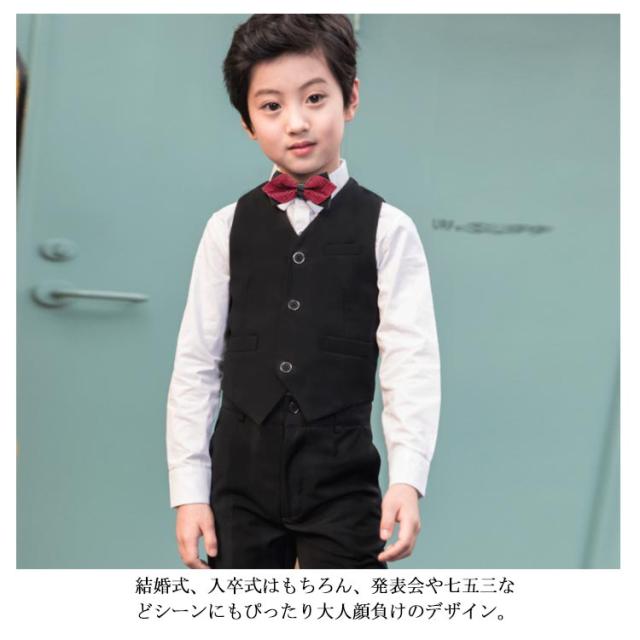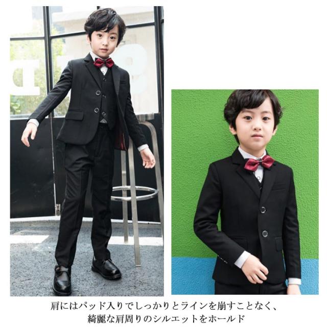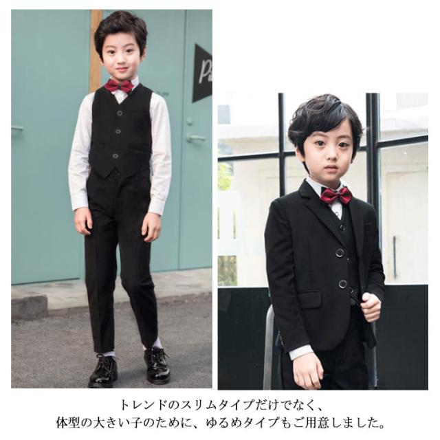 | 冠婚葬祭からピアノ発表会やコンサートなどフォーマルシーン大活躍するスーツ。 トレンドのスリムタイプだけでなく、体型の大きい子のために、ゆるめタイプもご用意しました。 ジャケット+シャツ+ベスト+パンツ+蝶ネクタイ+ポケットチーフ+サスペンダーの豪華な7点セット。 結婚式、入卒式はもちろん、発表会や七五三などシーンにもぴったり大人顔負けのデザイン。 シワになりにくい高品質な生地、ディテールまでこだわった上品さ溢れる逸品です。 | |