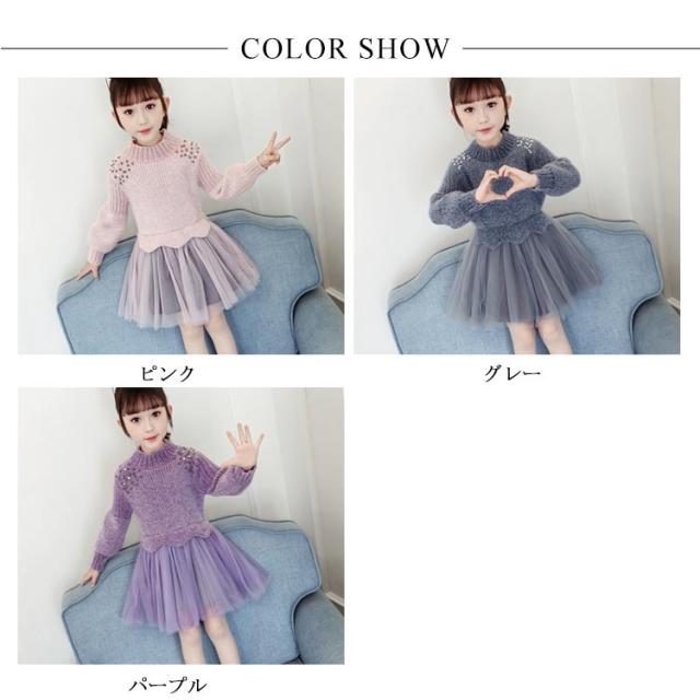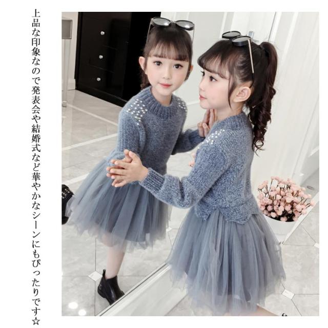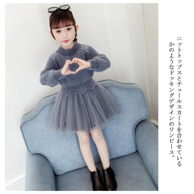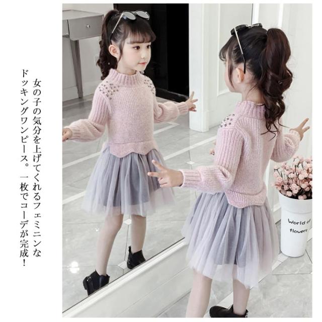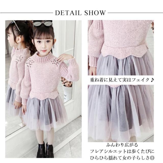 | 女の子の気分を上げてくれるフェミニンなドッキングワンピース。一枚でコーデが完成! ニットトップスとチュールスカートを合わせているかのようなドッキングデザインのワンピース。 上品な印象なので発表会や結婚式など華やかなシーンにもぴったりです☆ | |