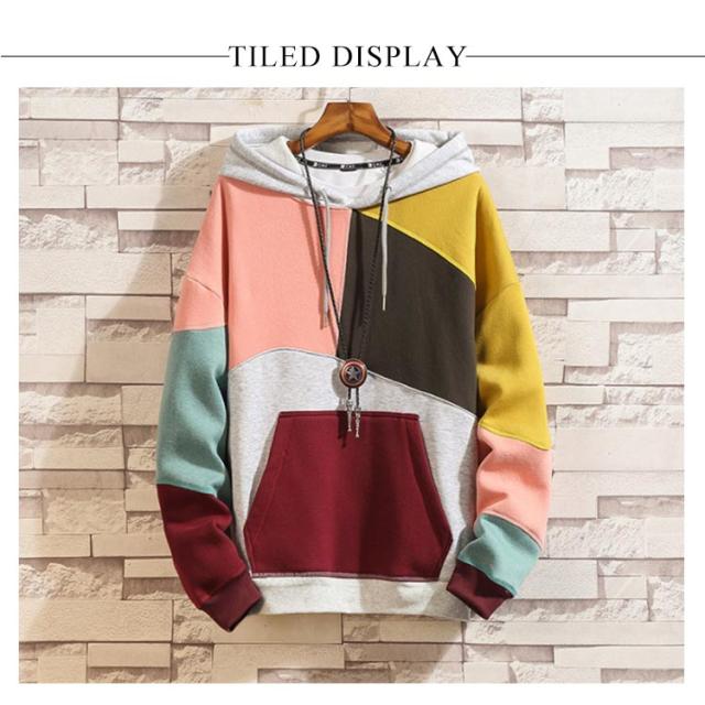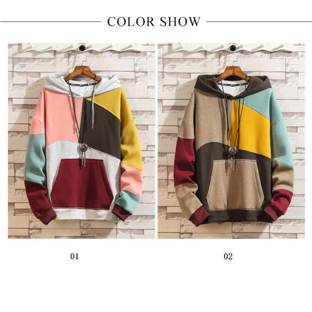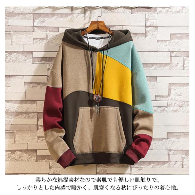 M-5XLサイズ!マルチカラーパーカー パーカー メンズ フード付き プルオーバーパーカー メンズパーカー カラフル 配色 トップス 春 秋 大きサイズ おしゃれ
