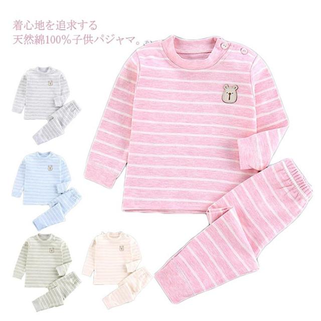 ベビー服 ベビーパジャマ キッズパジャマ 上下セット ボーダー柄 コットン 男の子 女の子 長袖 長ズボン 子供服 パジャマ 長袖パジャマ 女児 男児 肌着 寝巻き 寝間着 出産祝い ナイトウェア 部屋着 ルームウェア 新生児 セットアップ 66cm〜150cm