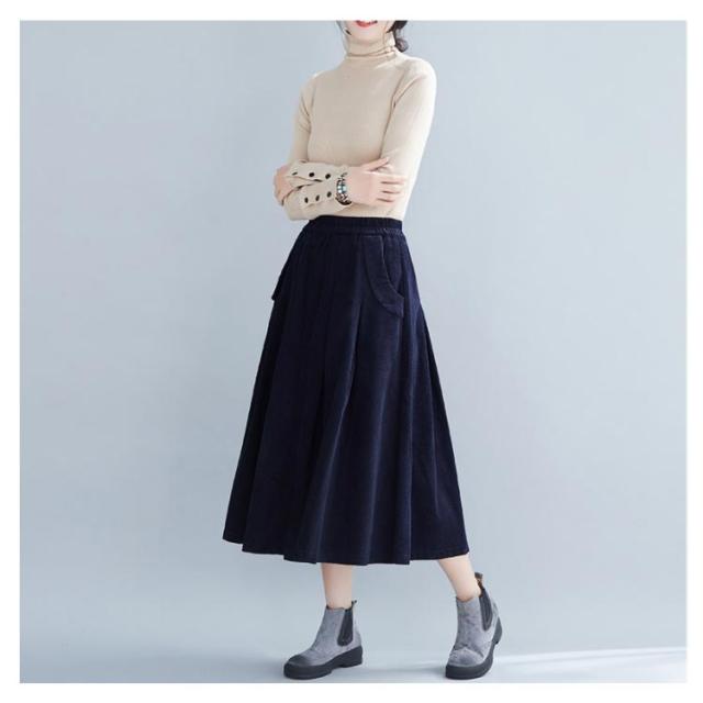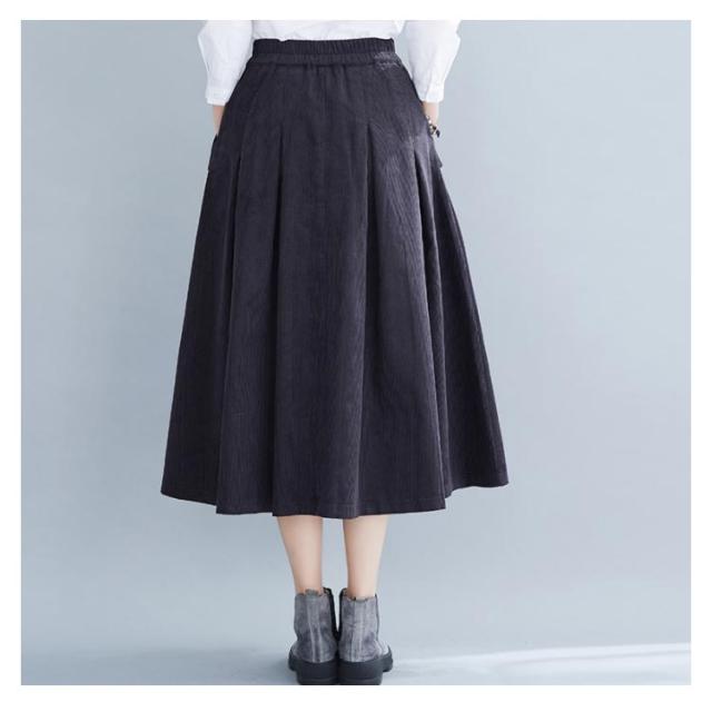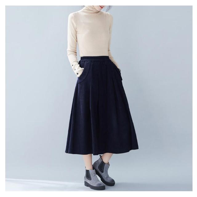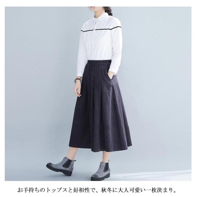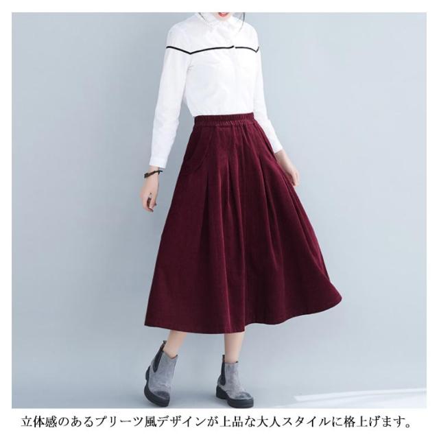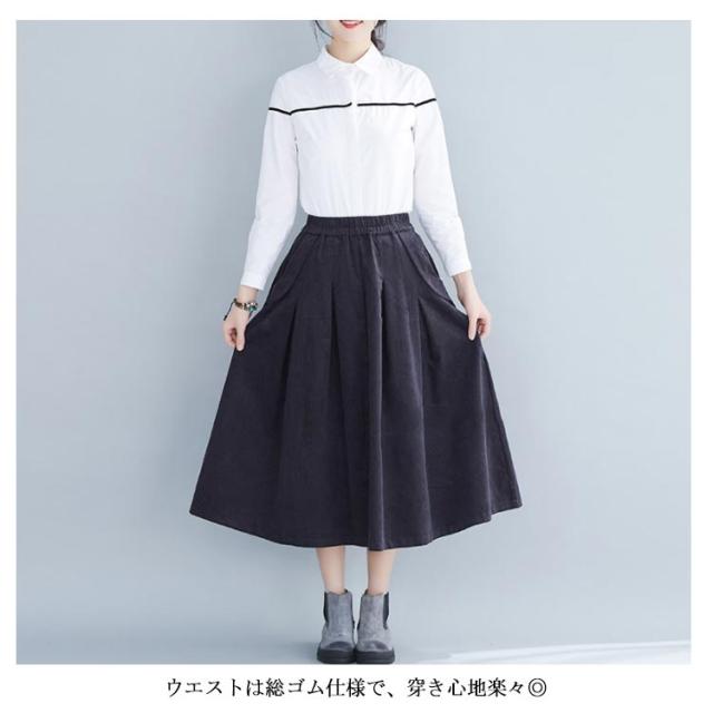 全4色×4サイズ!スカート コーデュロイ フレアスカート フレアロングスカート Aライン ロングスカート ミモレ丈 ハイウエスト コットン 綿 厚手 秋服 冬服 秋冬物