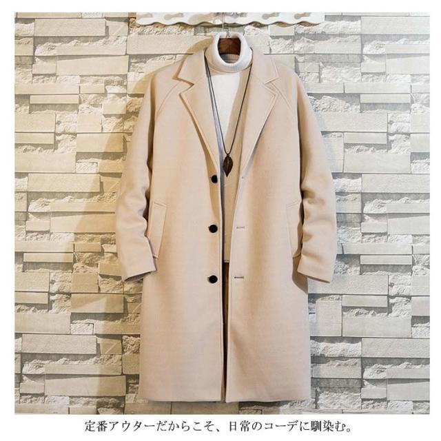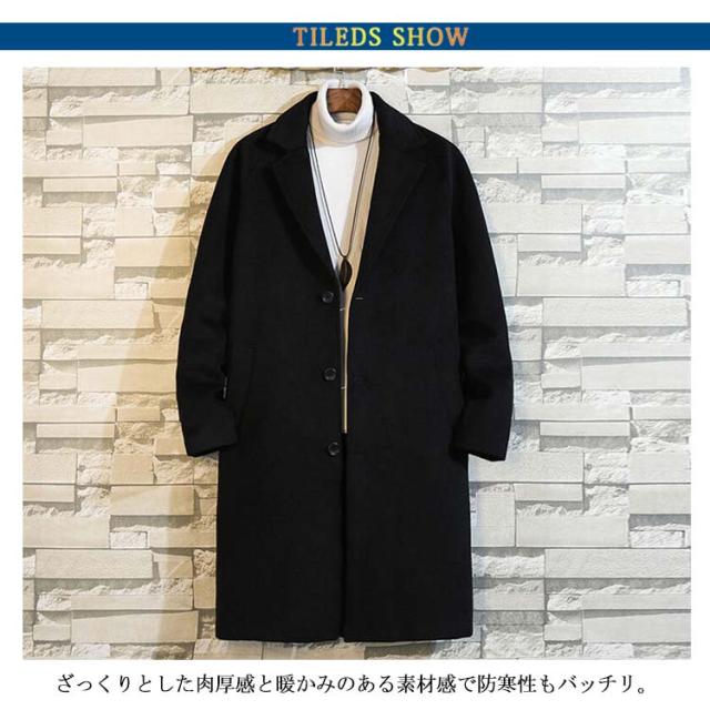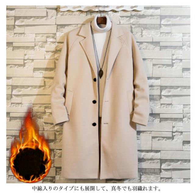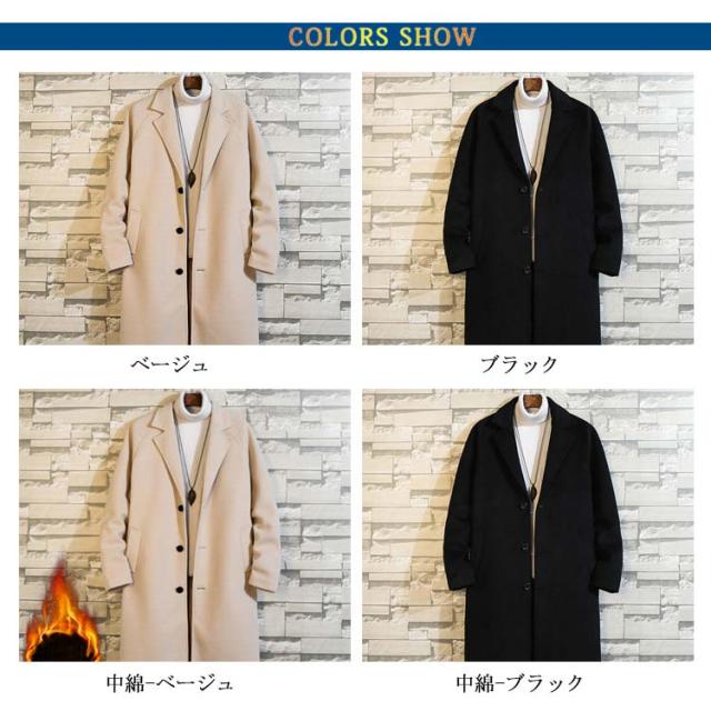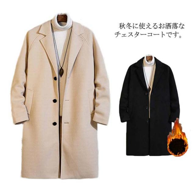 チェスターコート メンズ ロングコート アウター 中綿入り ポケット付き 体型カバー ロング丈 厚手 ゆったり お洒落 大きいサイズ 秋冬物 カジュアル 送料無料