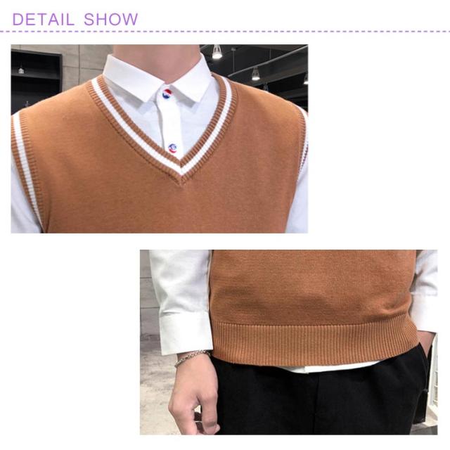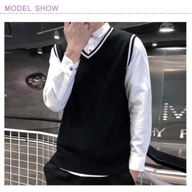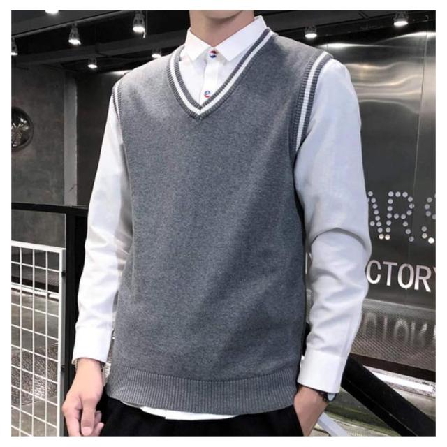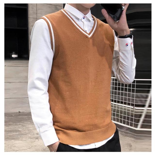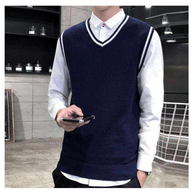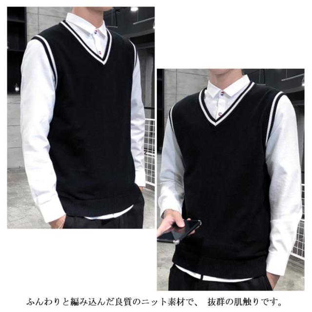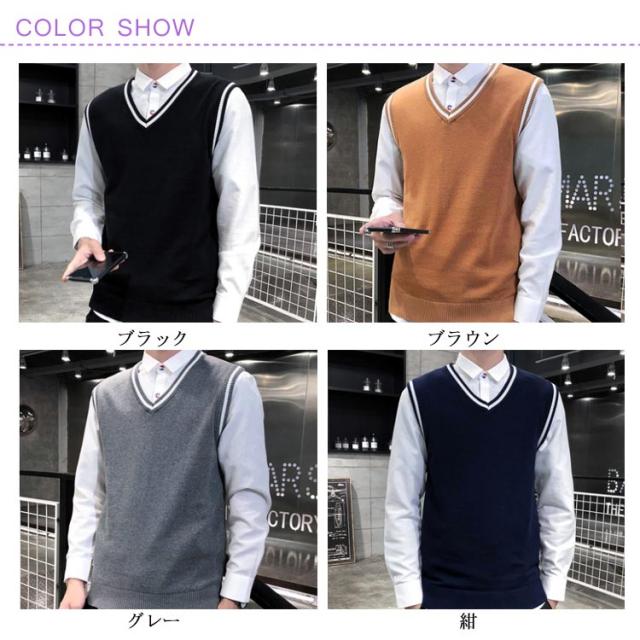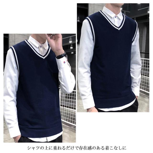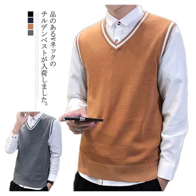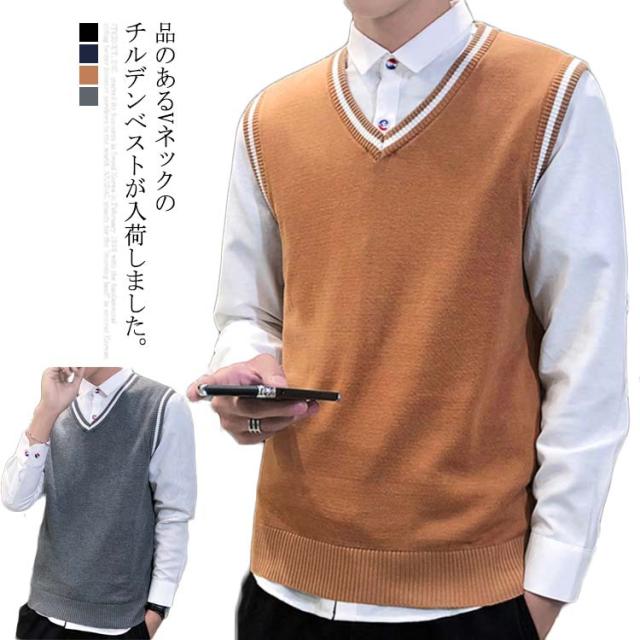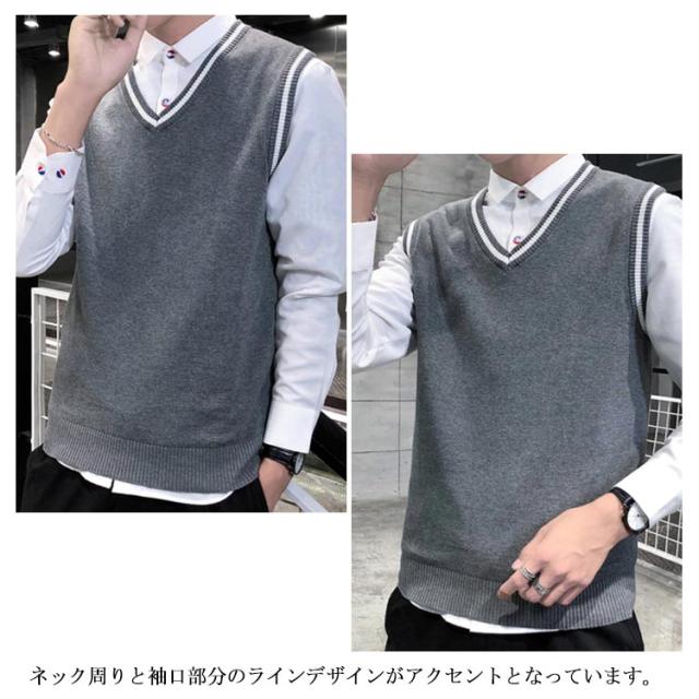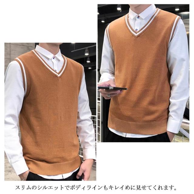 全4色×5サイズ!ニットベスト メンズ メンズニット Vネック ニットソー プルオーバー ニット トップス ライン入り ノースリーブ シルム 紳士服 春 秋