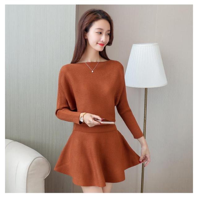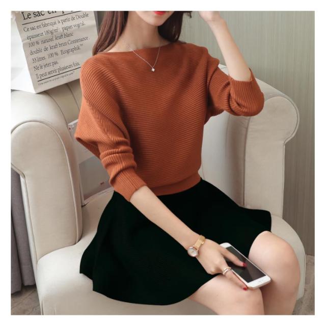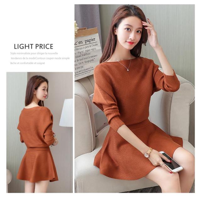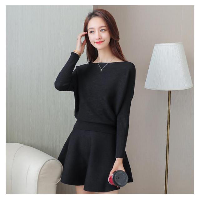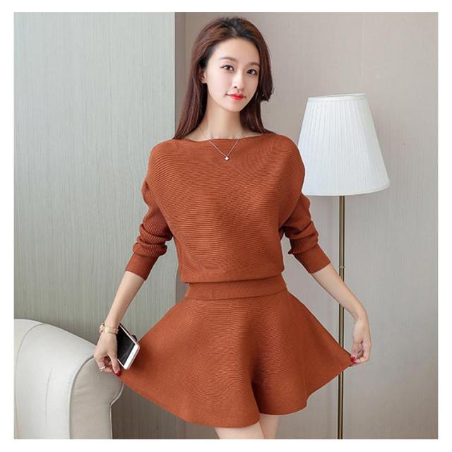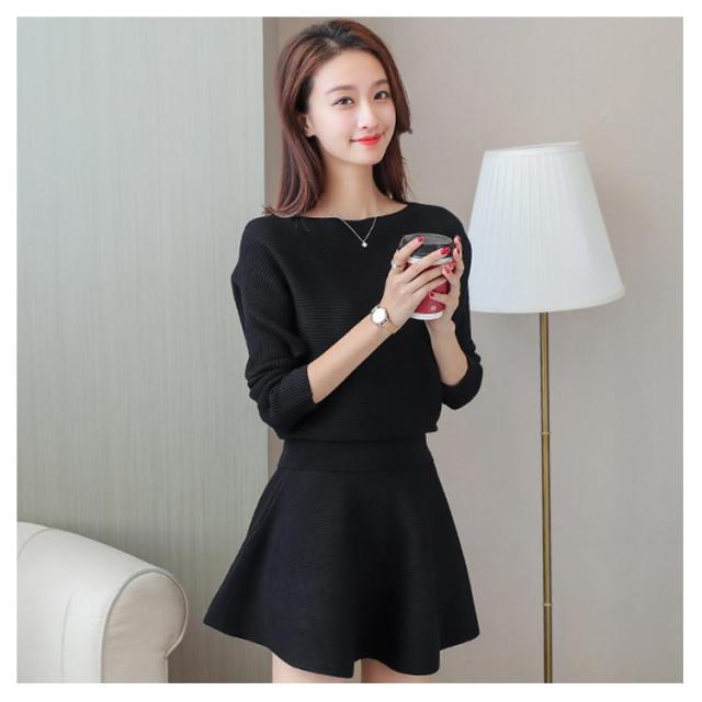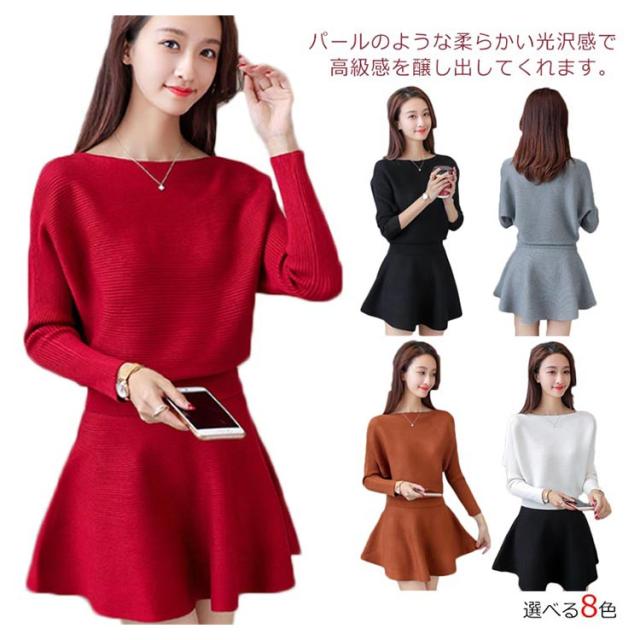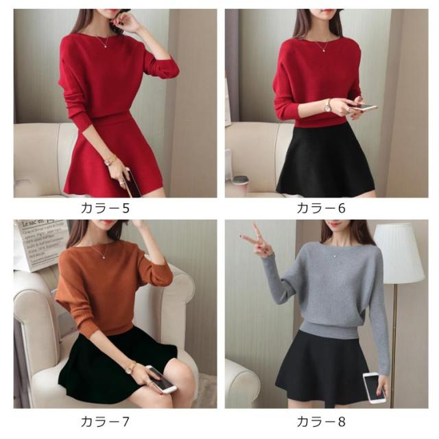 ニットトップス フレアスカート 2点セット ニットセーター プルオーバー レディース ミニスカート フレアスカート 重ね着風 おしゃれ ゆったり ファッションワ 無地 学生 暖かい 新作