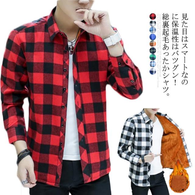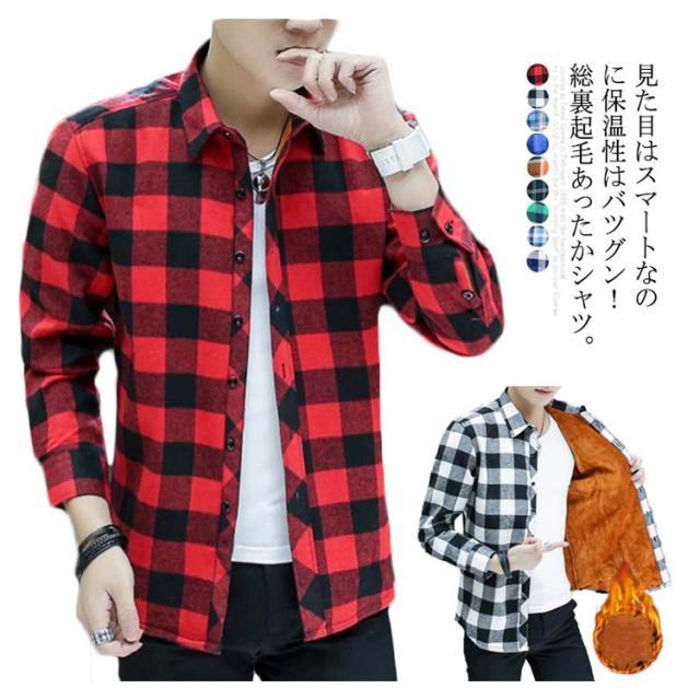 裏起毛 シャツ チェックシャツ メンズ アウター チェック柄 裏ボア あったか 厚手 防寒 保温 秋冬 冬服 大きいサイズ XXXL(4L)有 長袖シャツ カジュアルシャツ ビジネス アメカジ お洒落