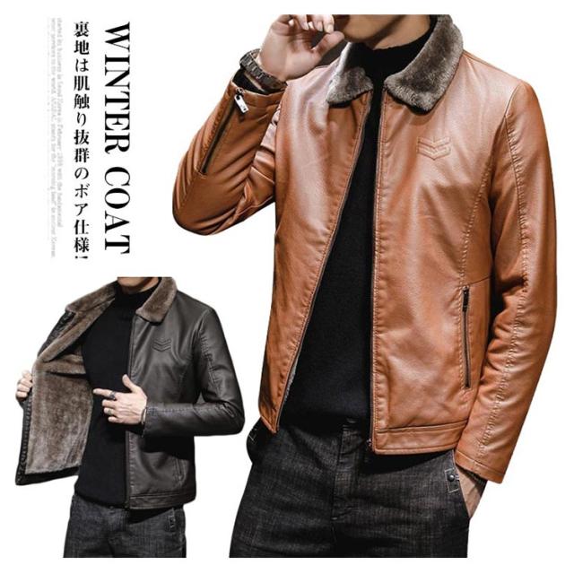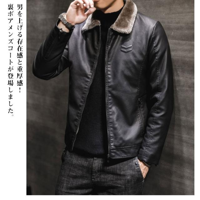 裏ボア コート PU レザー ジャケット ライダースジャケット コート メンズ 裏ボア ジャケット フェイク レザージャケット ボア ジャケット コート 防寒着 革ジャン アメカジ系 アウター
