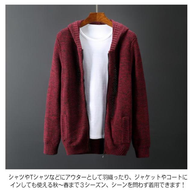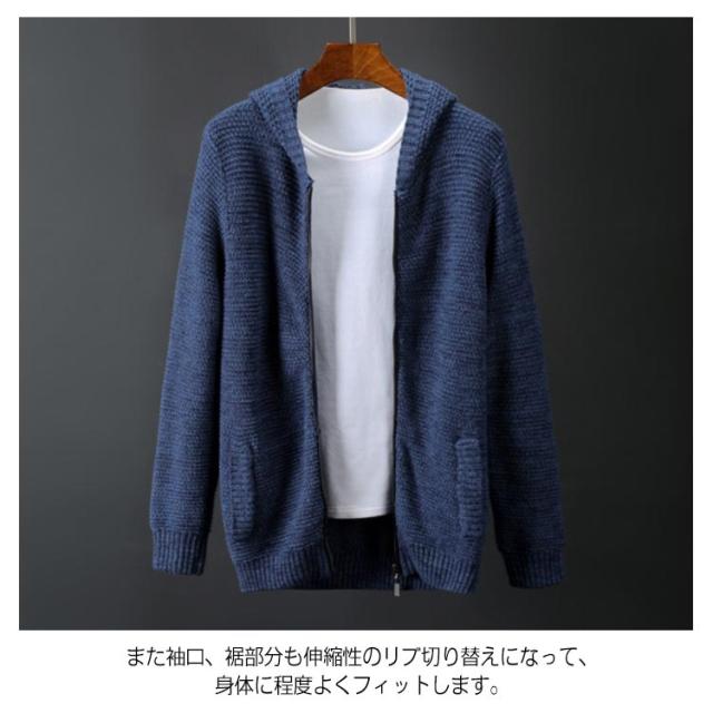 全4色×8サイズ!ニットジャケット ニットカーディガン メンズ ジップアップジャケット フード付き ニット カーディガン アウター パーカー カジュアル 秋 冬 大きサイズ