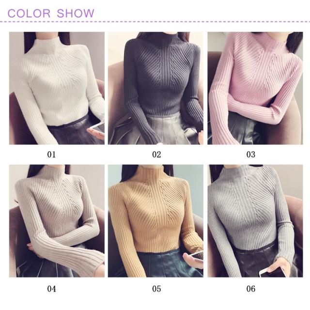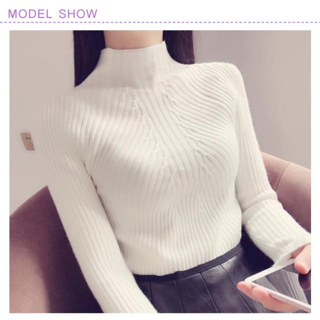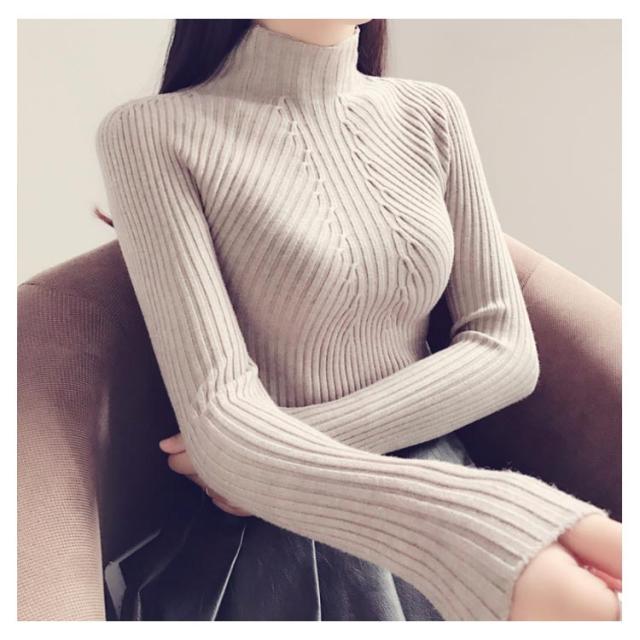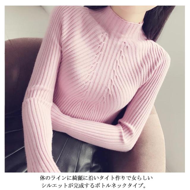 全6色×4サイズ!ハイネック ニットセーター リブ編みニット プルオーバー ニット セーター リブニット 長袖 コンパクト 防寒 無地 ショート丈 秋冬