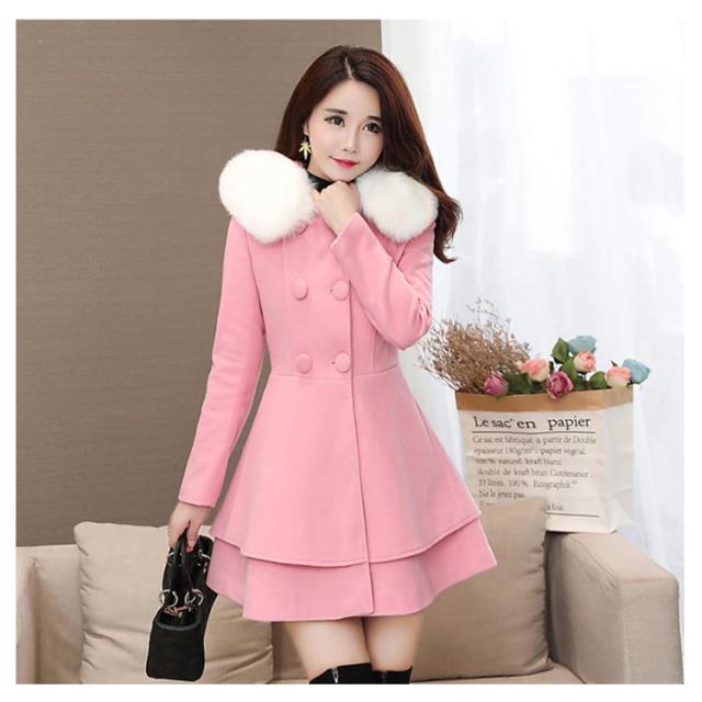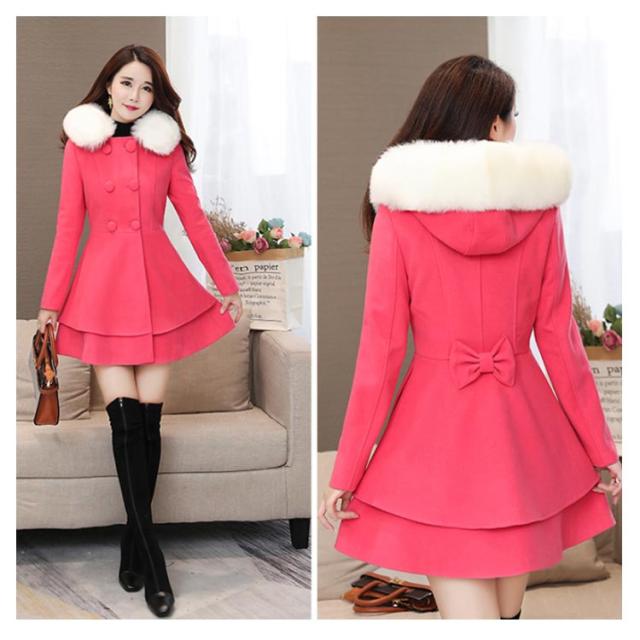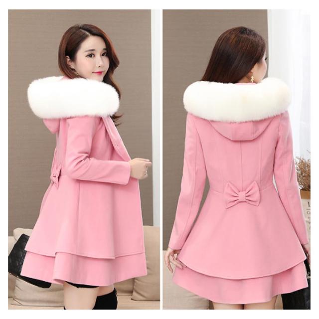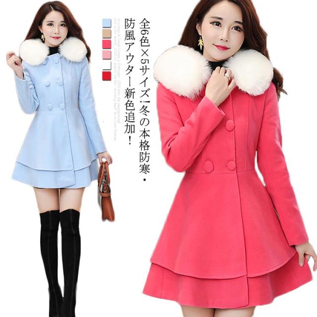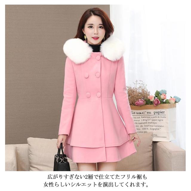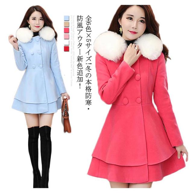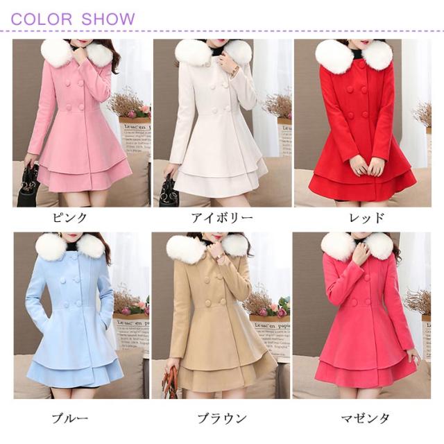 全6色×5サイズ!バックリボン フリル裾 メルトンコート ファー襟 Aラインコート レディース アウター コート フリル リボン 可愛い 冬物
