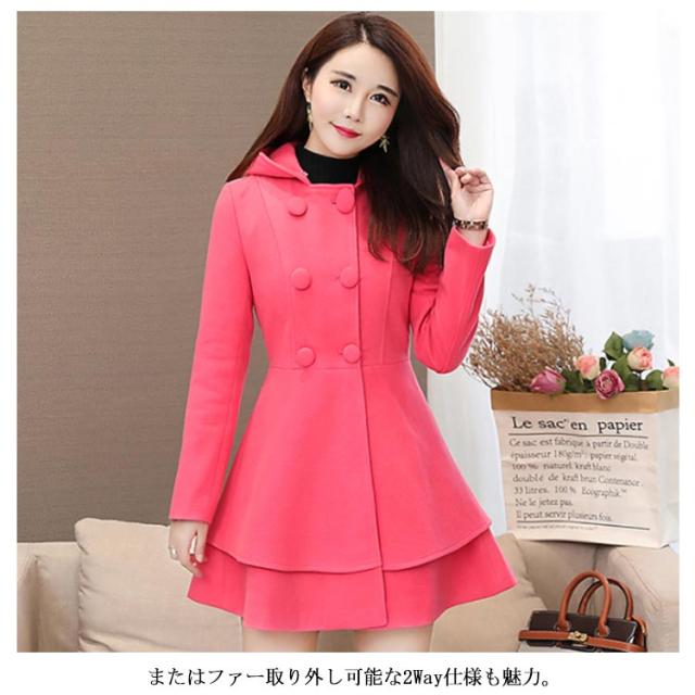 | 全6色×5サイズ!冬の本格防寒・防風アウター新色追加! フードにボリュームのあるフェイクファーを施し、リッチな雰囲気を演出してくれます♪ バックリボン付きがさりげない可愛さをアピール。 またはファー取り外し可能な2Way仕様も魅力。 広がりすぎない2層で仕立てたフリル裾も女性らしいシルエットを演出してくれます。 しっかりとした厚みのある生地で仕立て、暖かく丈夫でシワになりにくいという特徴である。 豊富なカラバリ展開で、一枚ぜひ手にとっておきたいスグレモノ。 | |