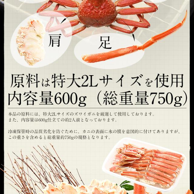 かに カニ 蟹 ズワイガニ ポーション むき身 ボイル カット済み 600g (総重量750g) ずわい蟹 ズワイ ずわいがに 贈り物 鍋 kst23_d ギフト プレゼント お歳暮