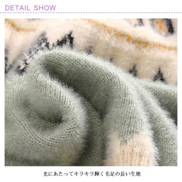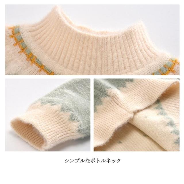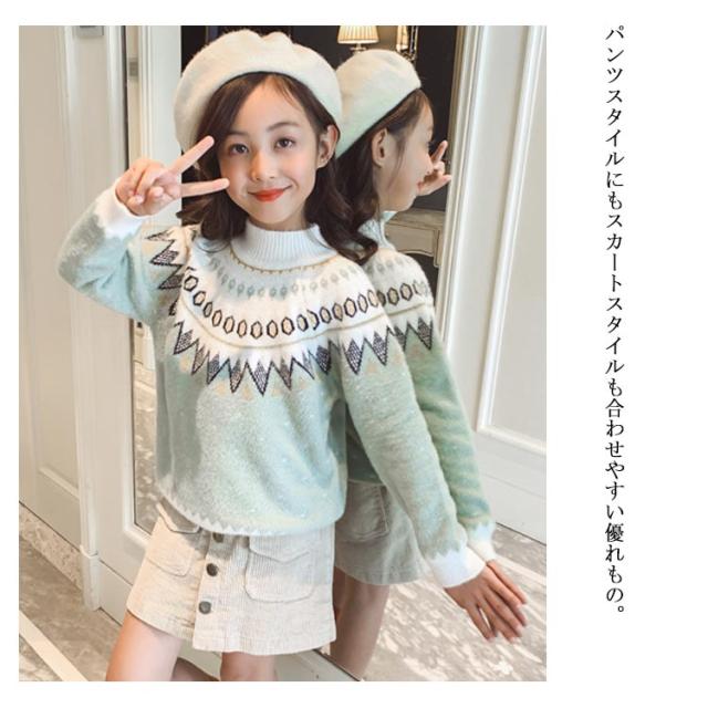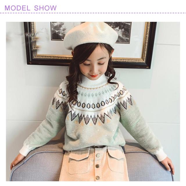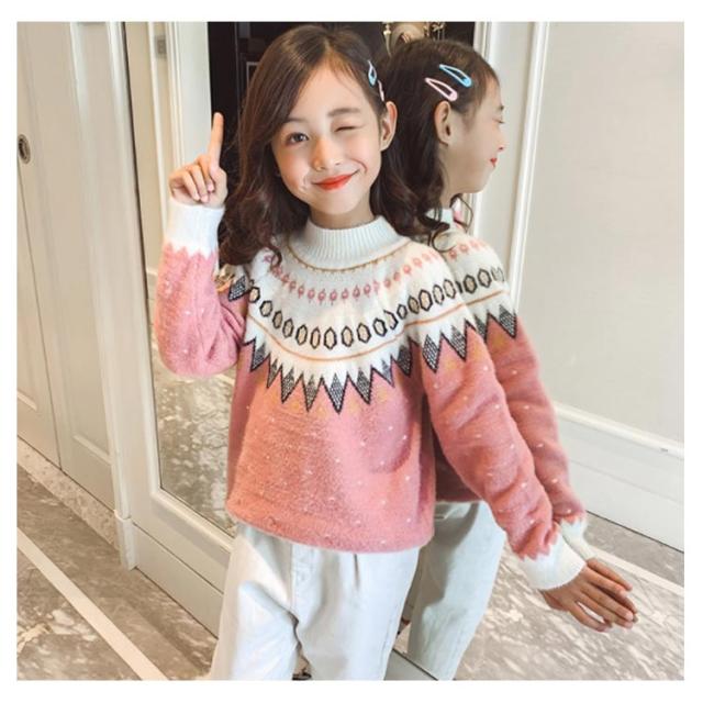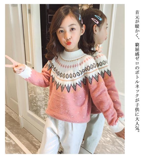 ノルディックセーター ふわふわ ミンクタッチ ニットせーター ニットトップス 子供 女の子 可愛い ノルディック柄 長袖 セーター ボトルネック プルオーバー 秋冬 110 120 140 150 160 レトロ キッズ アンティーク ニット トップス 子供服