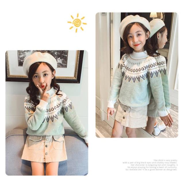 | レトロ雰囲気溢れる子供ニットセーター。 1枚で存在感抜群!秋冬の主役ノルディック柄ニットトップス。 パンツスタイルにもスカートスタイルも合わせやすい優れもの。 滑らかで毛足の長い生地で、保温性もバツグン。 首元が暖かく、窮屈感ゼロのボトルネックが子供に大人気。 | |
