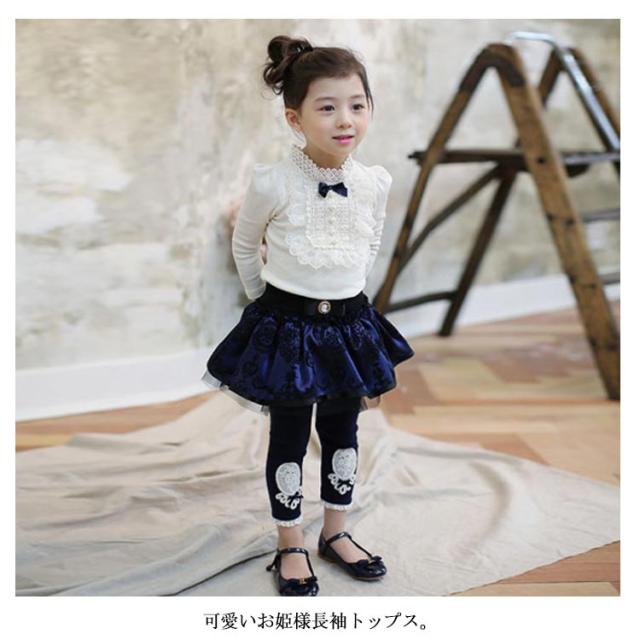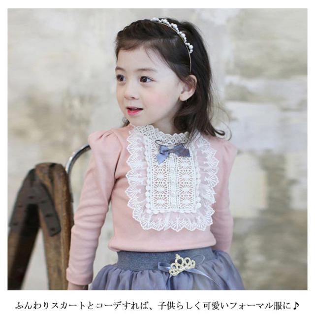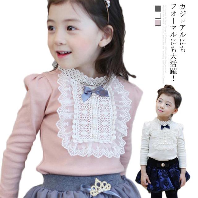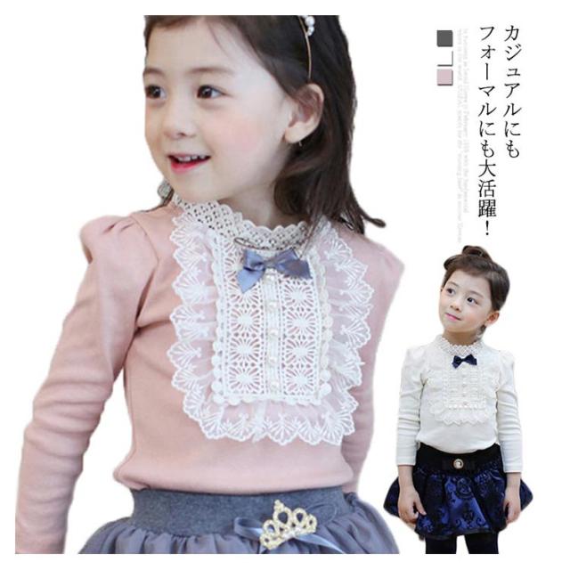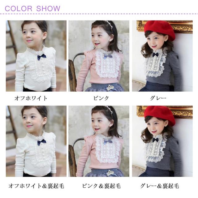 送料無料 お姫様 カットソー レース襟 リボン 女の子 キッズ 子供服 長袖 Tシャツ ロンT プルオーバー 裏起毛 可愛い ブラウス インナー トップス 春秋 冬 フォーマル カジュアル 90cm 100cm 110cm 120cm 130cm 140cm 150cm