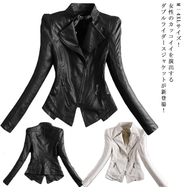 M−4XLサイズ!ライダースジャケット レディース フェイクレザー 合皮ジャケット ライダース ジャケット スリム 中綿 大きサイズ 春 秋 冬