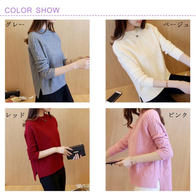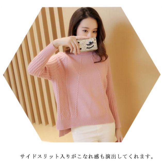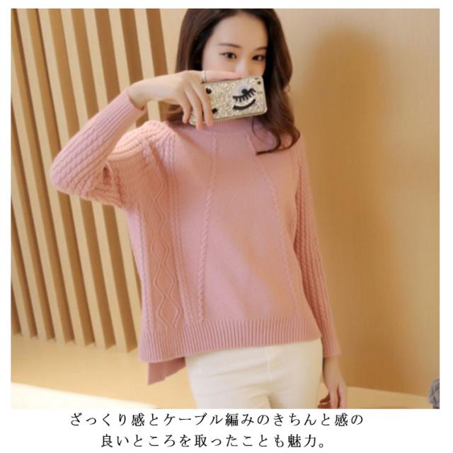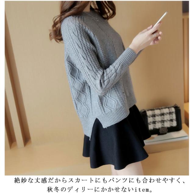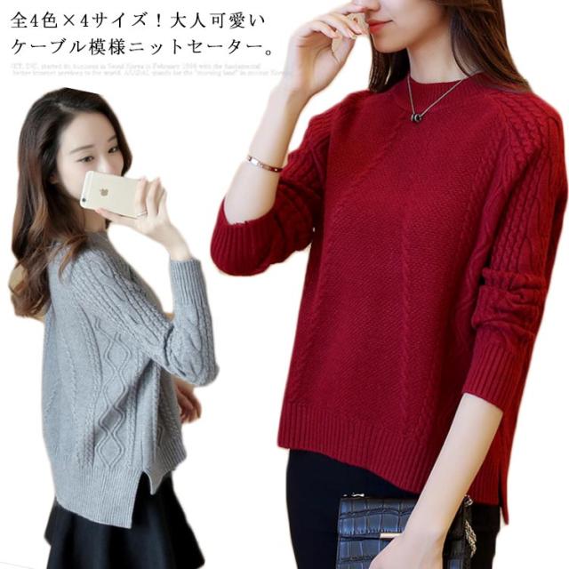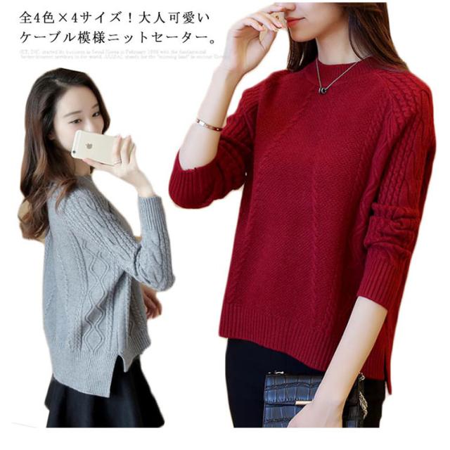 全4色×4サイズ!ニットセーター レディース ケーブルニット ざっくりニット ケーブル編み ニット セーター プルオーバー トップス スリット入り ショート丈 秋冬 冬服 冬物