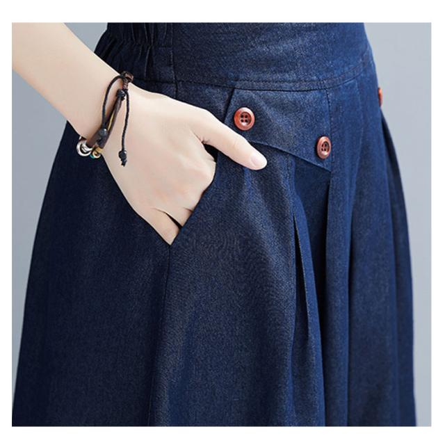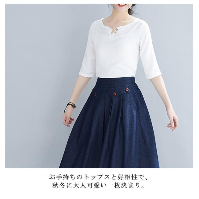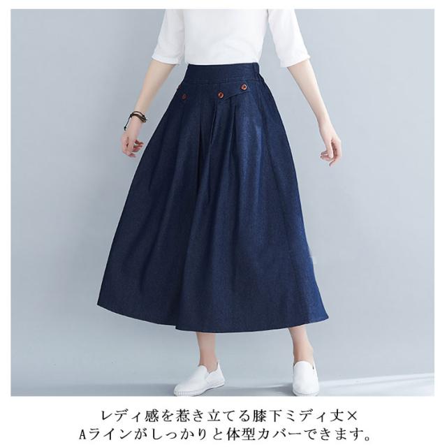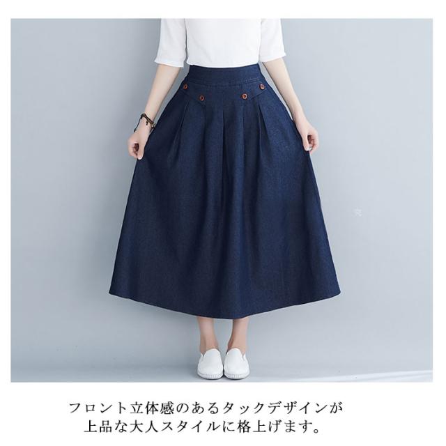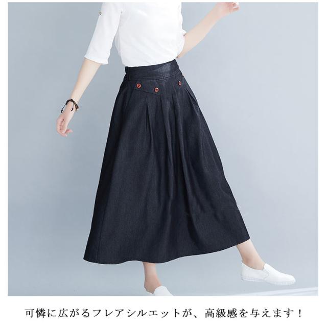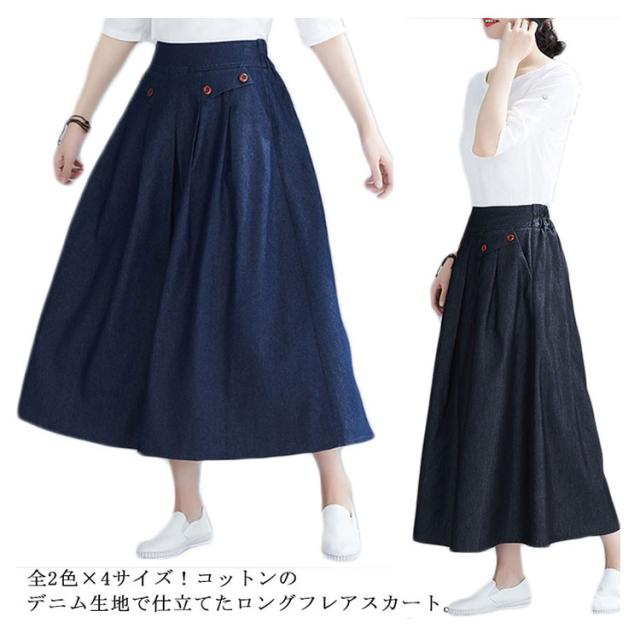 全2色×4サイズ!フレアロングスカート スカート フレア デニムスカート フレアスカート ロングスカート タック Aライン 大人可愛い 春服 秋服