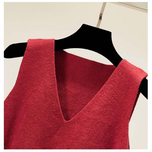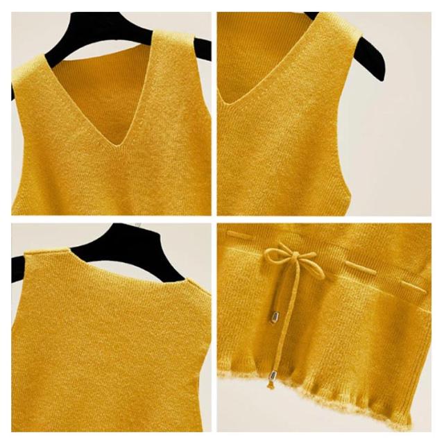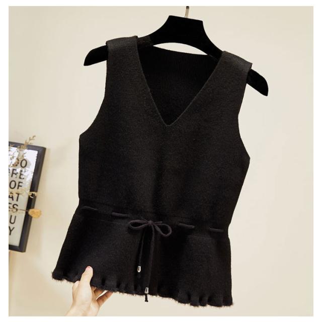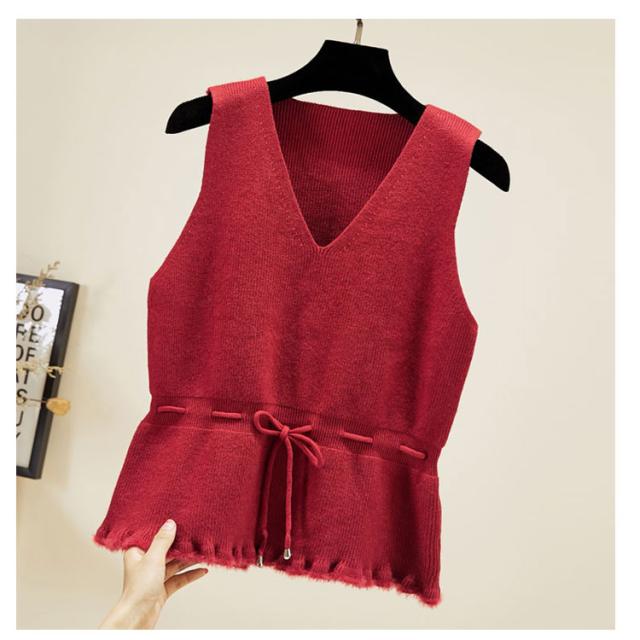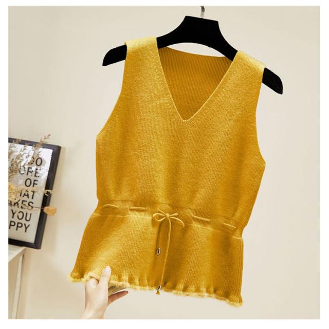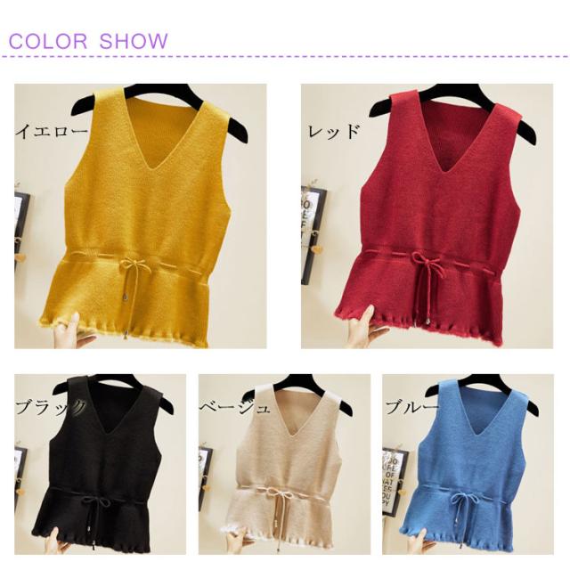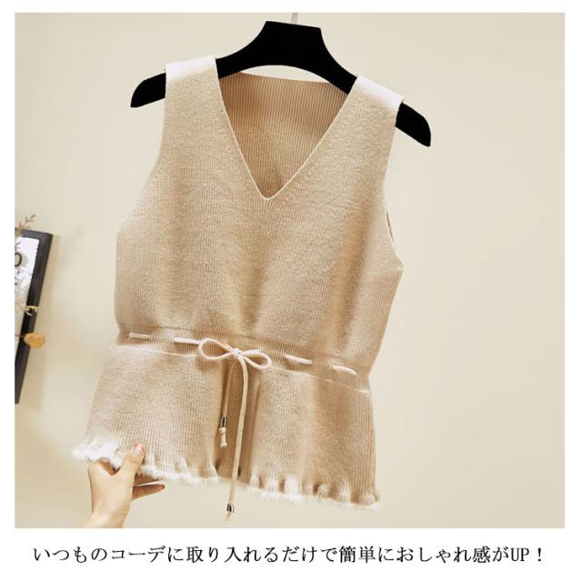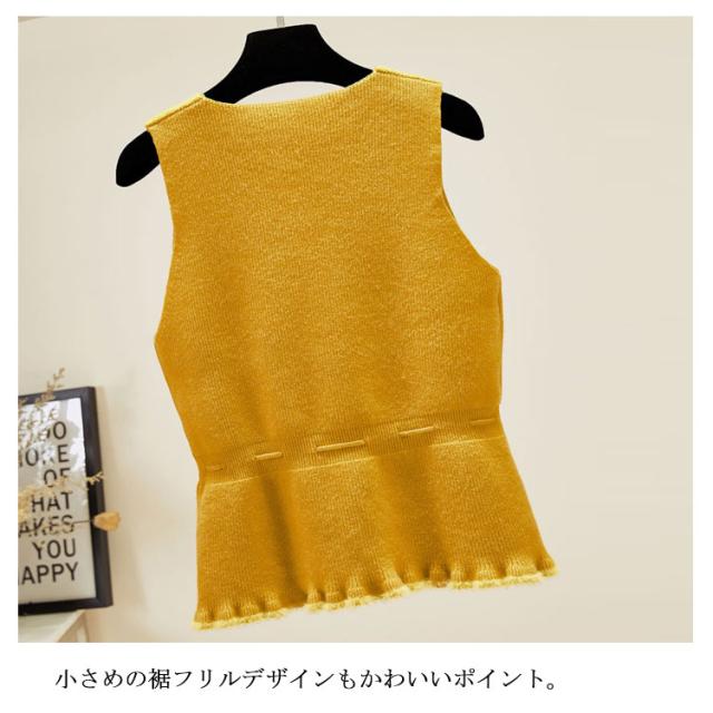全5色×4サイズ!裾フリル ニットベスト ノースリーブニット レディース ニットソー ニットトップス ノースリーブ 無地ニット ショート丈 プルオーバー カジュアル 春 秋