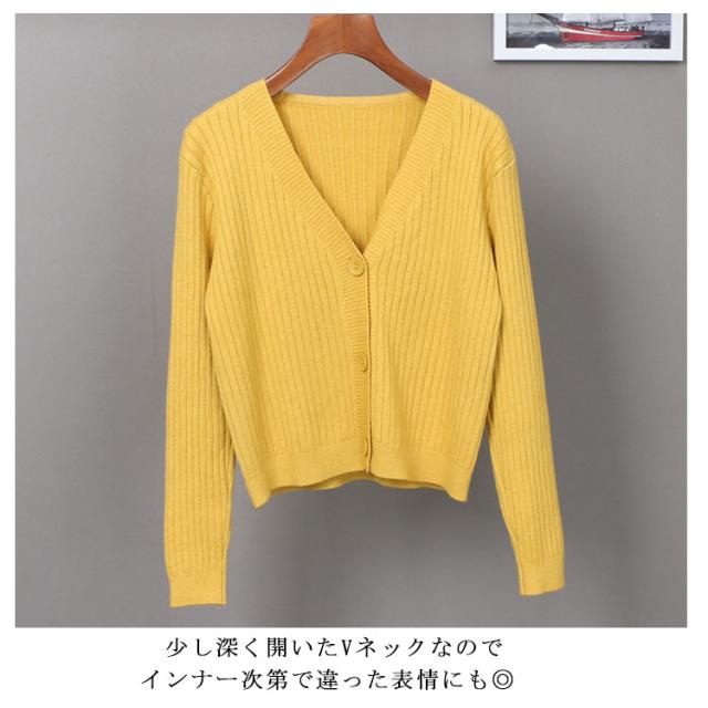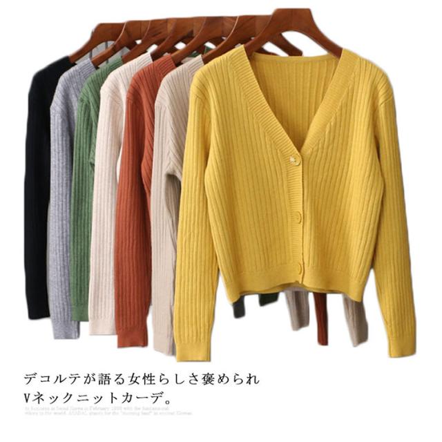 全10色選べる!ニット カーディガン Vネック レディース リブ リブニット ニットカーディガン リブニットカーディガン Vネックニット 伸縮性 ストレッチ シンプル 無地 春 秋