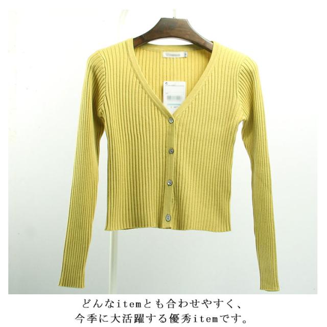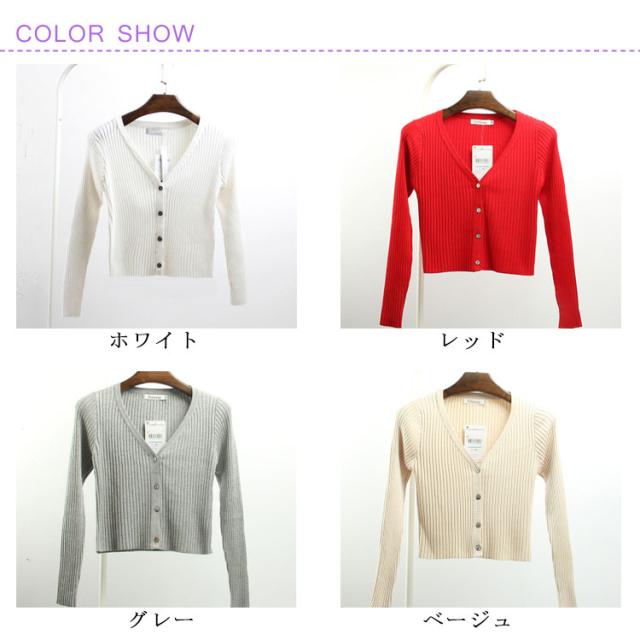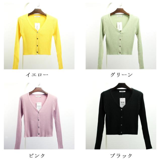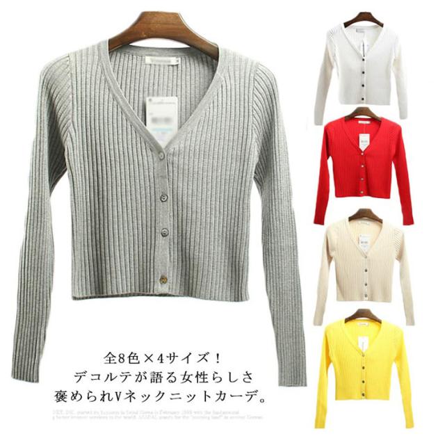 全8色×4サイズ!リブカーディガン 春 ニット Vネック ニットカーディガン カーディガン 長袖 リブ リブニット ショート丈 伸縮性 ストレッチ シンプル 無地 冷気対策 秋服 レディース