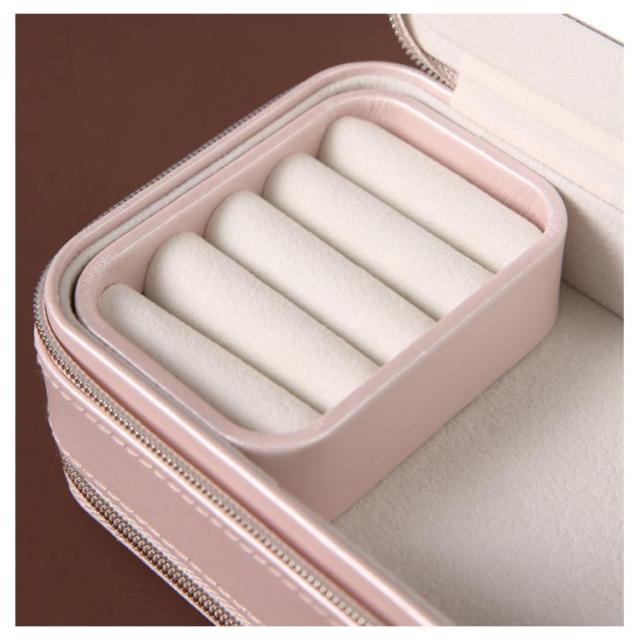 | コンパクトながらスッキリ収納できる2層式ジュエリーボックス。 高級感があるPUレザーがとてもおしゃれ、携帯に便利なサイズ感で旅行や仕事後のオフタイムに大活躍。 大切な指輪、ネックレス、イヤリング、ピアス、腕時計など小物入れに最適の大容量収納ポーチ。 口紅もすっぽり収納できるから、便利な鏡付きで、化粧品直しも◎ 収納スペースは柔らかいベロア素材で、大切なジュエリーを傷つけないから安心◎ 乙女心をくすぐる可愛いパステルカラーの2色展開です。 | |