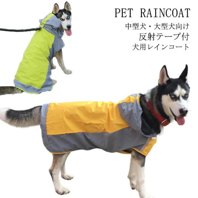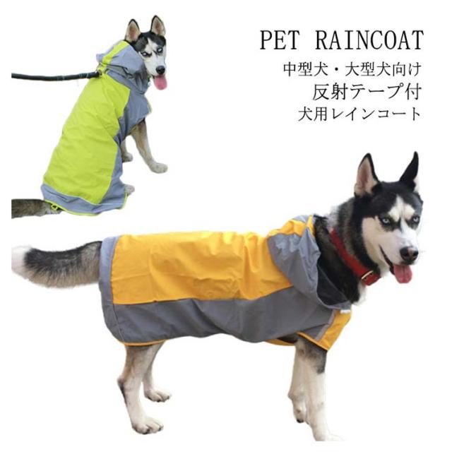 中型犬・大型犬向け 犬用 レインコート ペット用 ポンチョタイプ レインコート 防水 帽子付き 雨具 梅雨対策 軽量 反射材付き 犬服 ドッグウェア ペット服 ポンチョジャケット 柴犬 ゴールデンレトリーバー ラブラドール