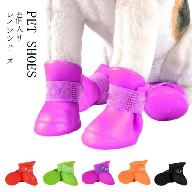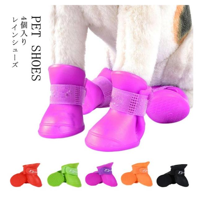 犬用シューズ シリコン ペットシューズ 防水シューズ 4個入り ペット用 保護シューズ 犬用 レインブーツ 犬用靴 レインシューズ 犬用品 保護 ケガ 治療 雨靴 小型犬 中型犬 ドッグシューズ 雨 雪 犬用品 ペット用品