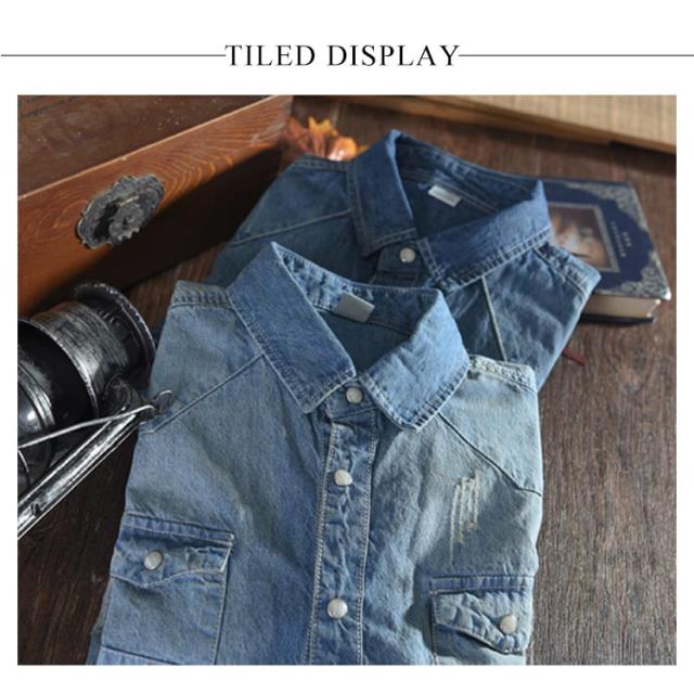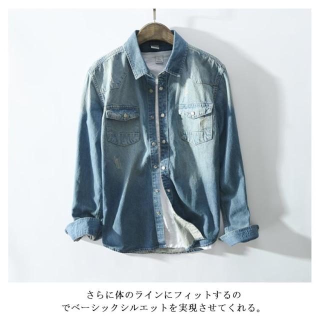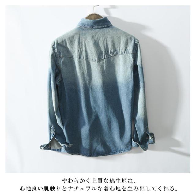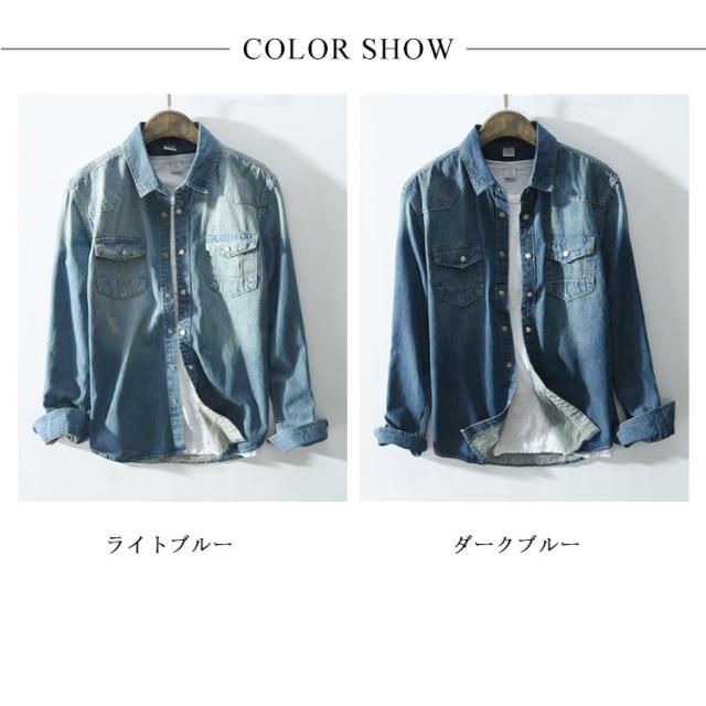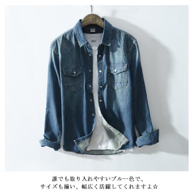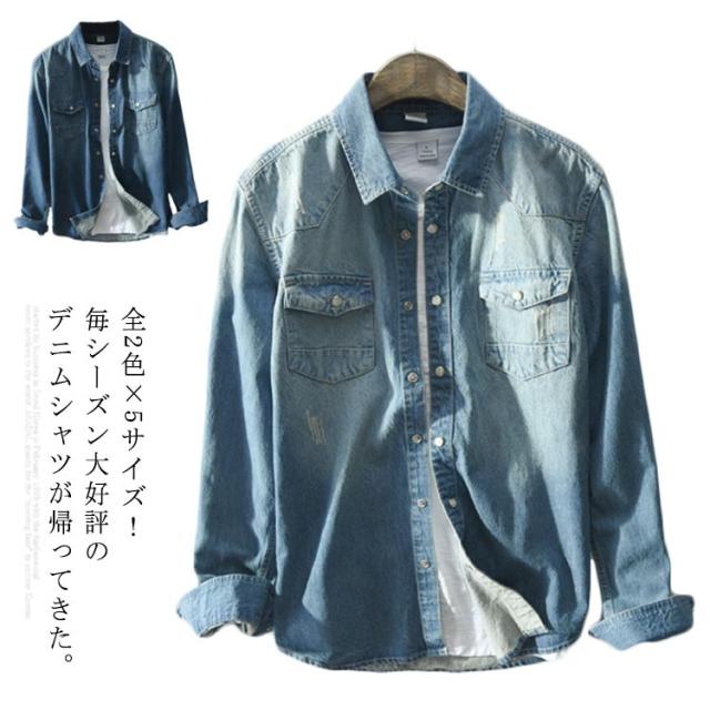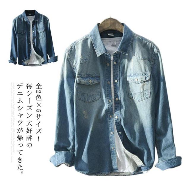 全2色×5サイズ!春服 春物 シャツ ブラウス メンズ デニムシャツ デニムブラウス 長袖シャツ デニム カジュアルシャツ 長袖 ベーシック コットン 綿 メンズファッション