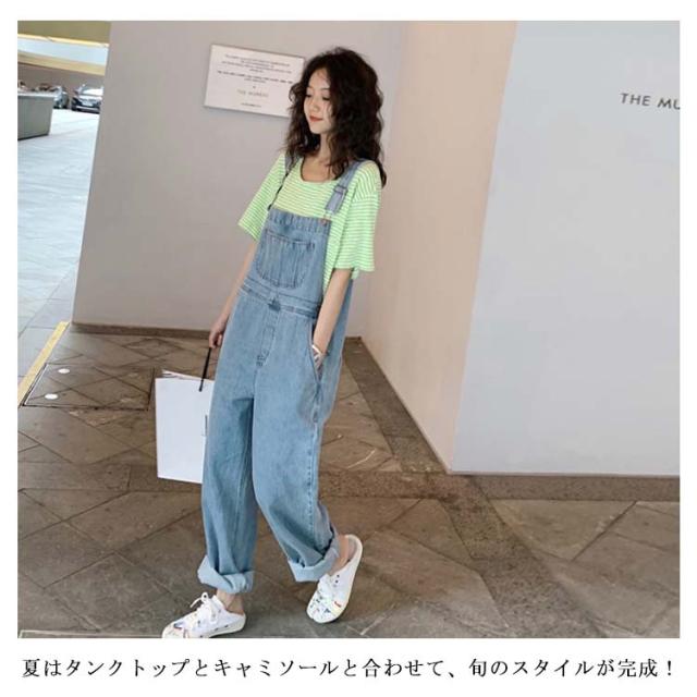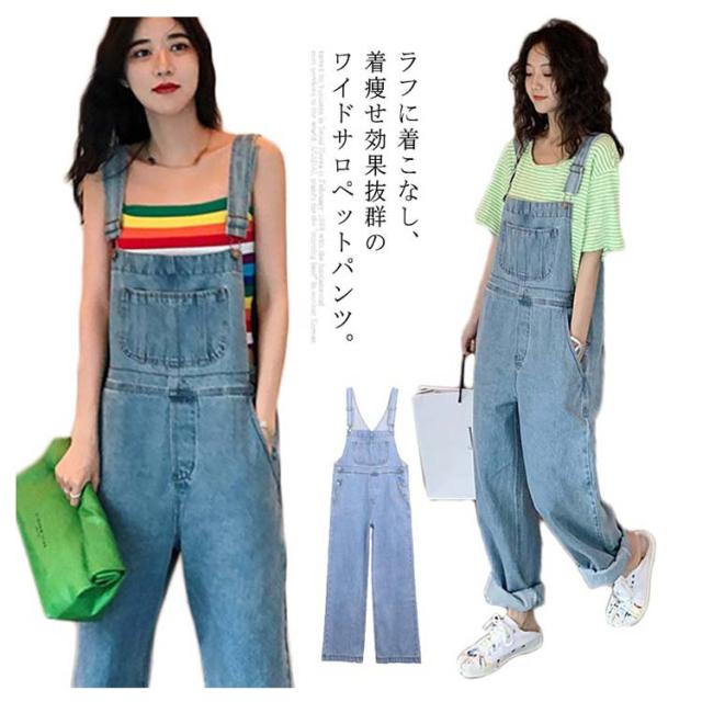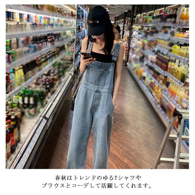 ワイドサロペットパンツ レディース デニムサロペット ロングパンツ 柔らかい ウォッシュ加工 ワイドパンツ ゆったり 体型カバー 着痩せ オーバーオール マタニティ
