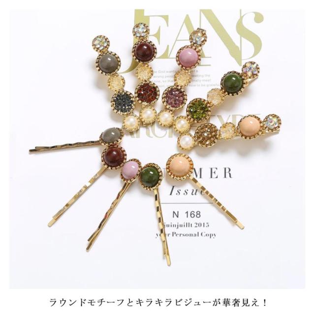 | 大人のための可愛いヘアクリップ。 ラウンドモチーフとキラキラビジューが華奢見え! 結婚式や入卒園式などのヘアアレンジにプラスして、アクセントに♪ デイリーにも活躍してくれる子供っぽくならないヘアピンです。 | |