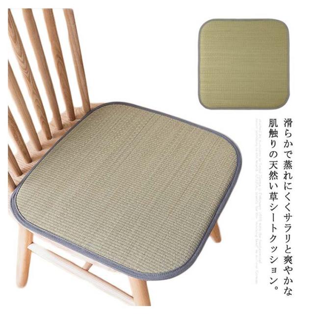 | 滑らかで蒸れにくくサラリと爽やかな肌触りの天然い草シートクッション。 中には柔らかい低反発素材を採用し、お尻に優しい。 涼しくて通気性抜群のい草シートクッション、食卓用のチェアに敷く夏用座布団として使っていただけます。 床の上に置いて座布団として、車のシートの上においてクッションとして大活躍するから重宝します。 裏面は嬉しい滑り止め加工で、ズレにくいから安定感も◎ | |
