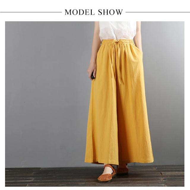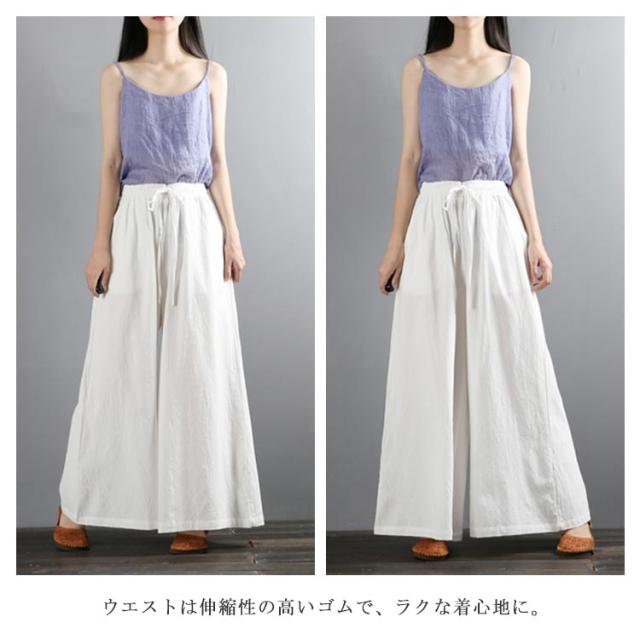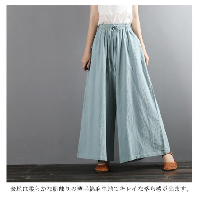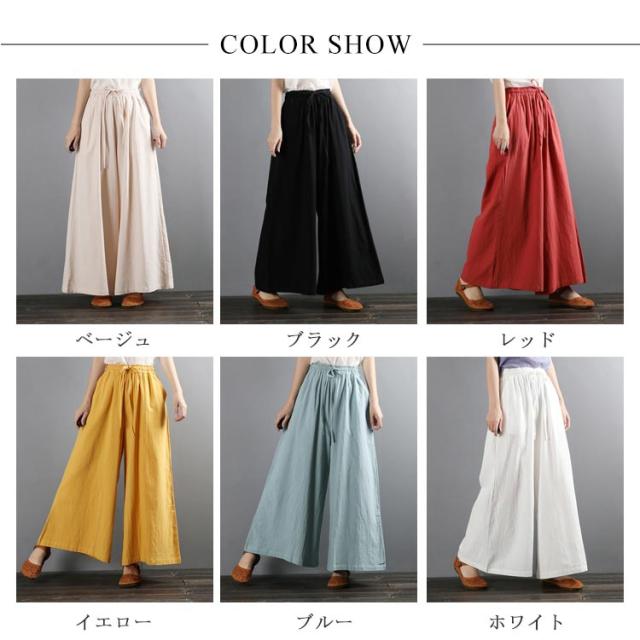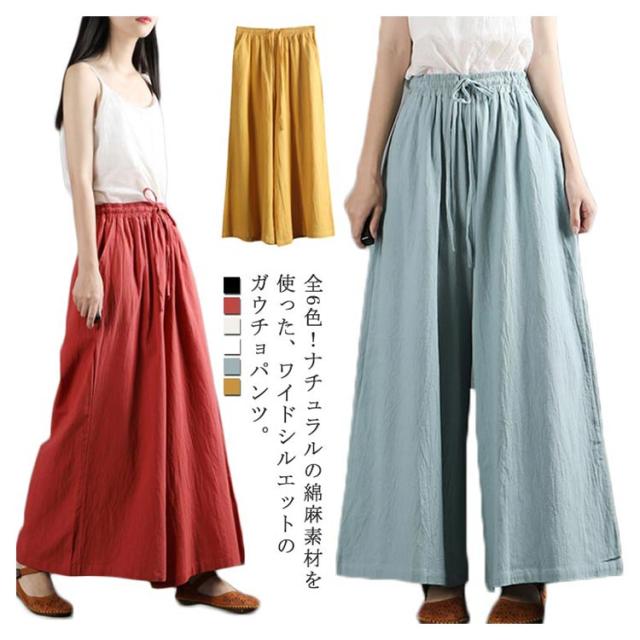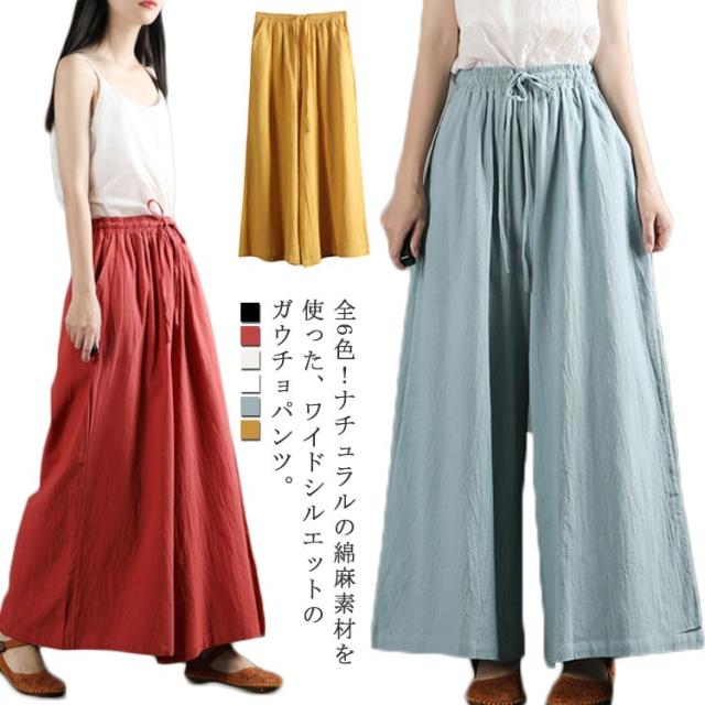 全6色!綿麻 ガウチョパンツ レディース 麻混 パンツ フレアパンツ ワイドパンツ コットンリネン イージーパンツ ヨガパンツ ワイド フレア ゆったり 体型カバー 春夏 シンプル 無地