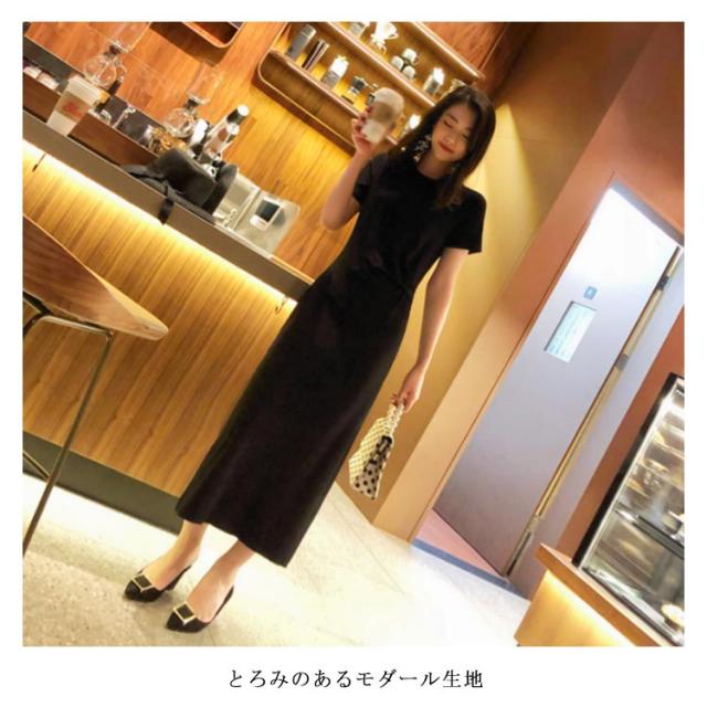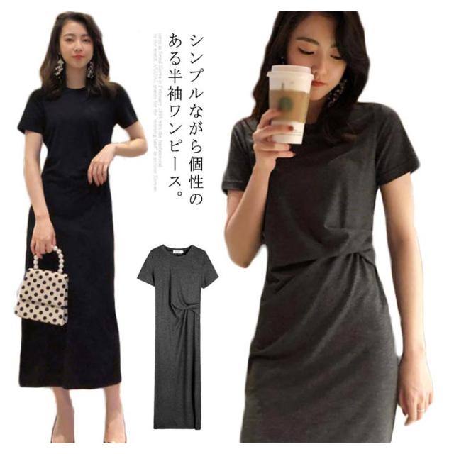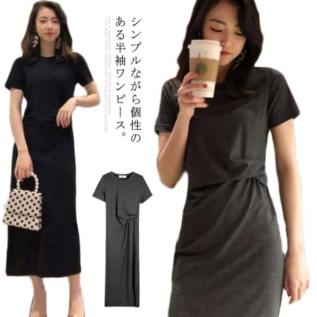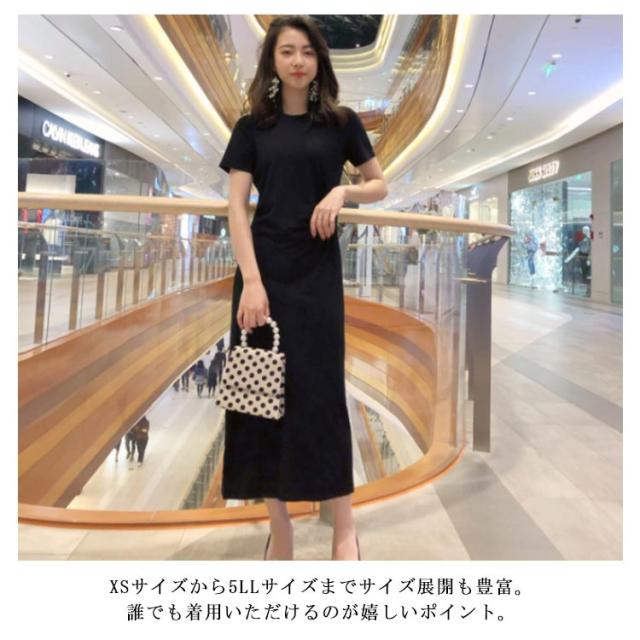 2色×8サイズ ロングワンピース 送料無料 半袖 ワンピース レディース 無地 Tシャツワンピース マキシワンピース バックスリット タック 夏 小さいサイズ 大きいサイズ カジュアル お出かけ