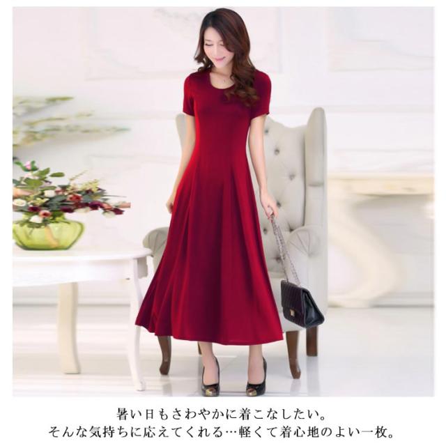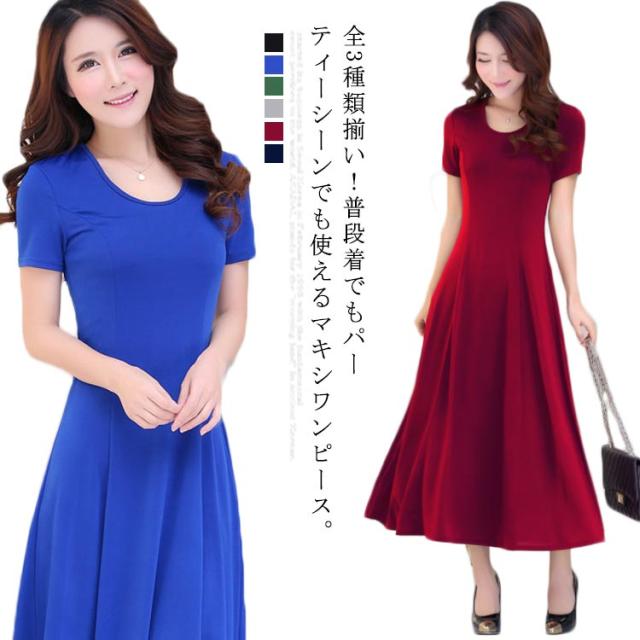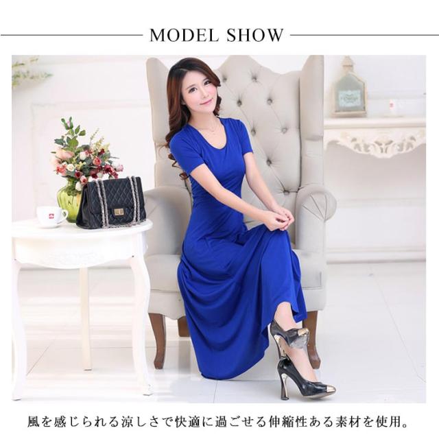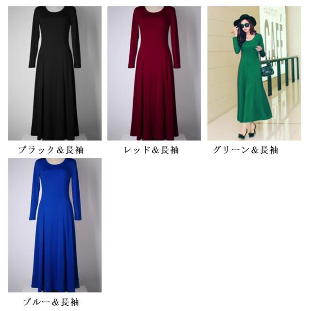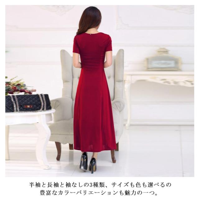 [長袖/半袖/袖なし XS−3XLサイズ]ワンピース マキシワンピース マキシ丈ワンピース Uネック ロングワンピース パーティードレス マキシ丈 ロング丈 ハイウエスト フレア Aライン 伸縮性