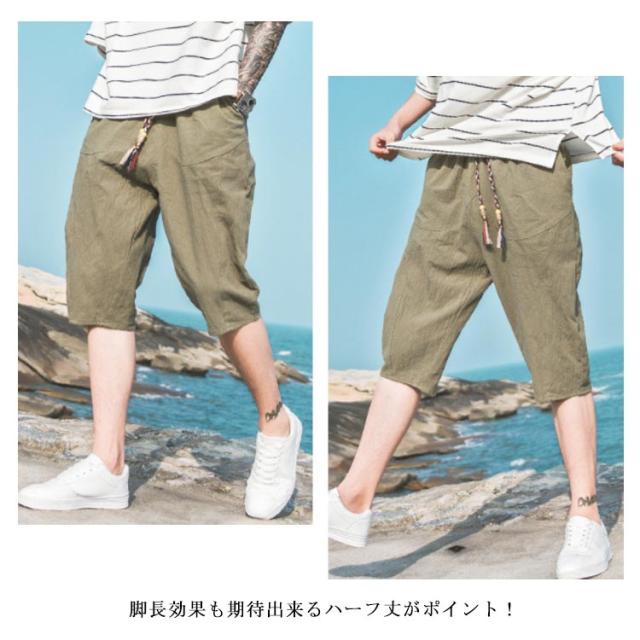 7分丈 パンツ 綿麻 ショートパンツ ハーフパンツ メンズ リネン サルエルパンツ ショーツ ショーパン 5分丈 パンツ 綿麻ショーツ リネンショーツ 海パン イージーパンツ リラックスパンツ ルームウェア