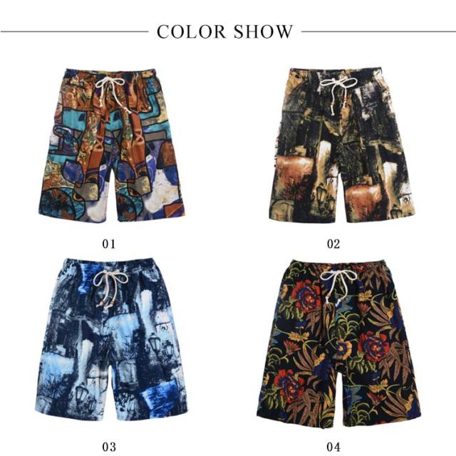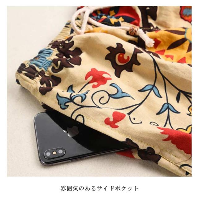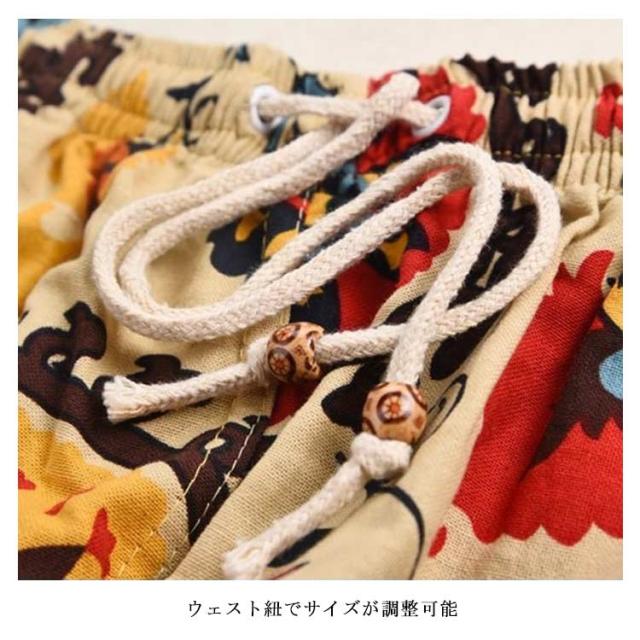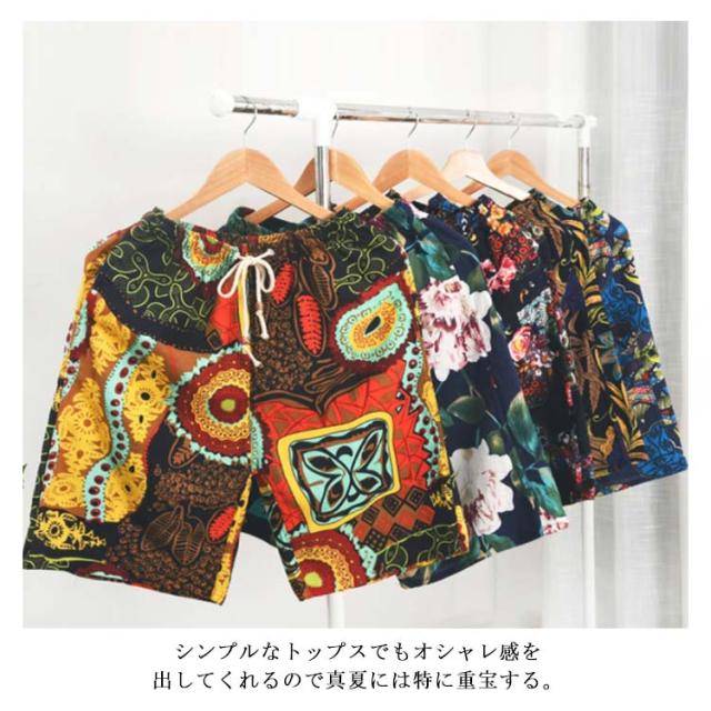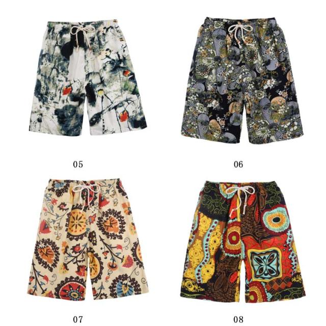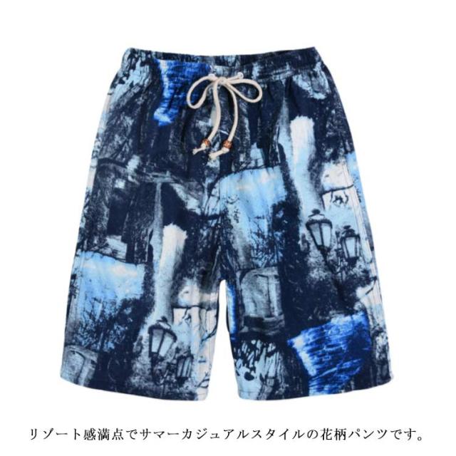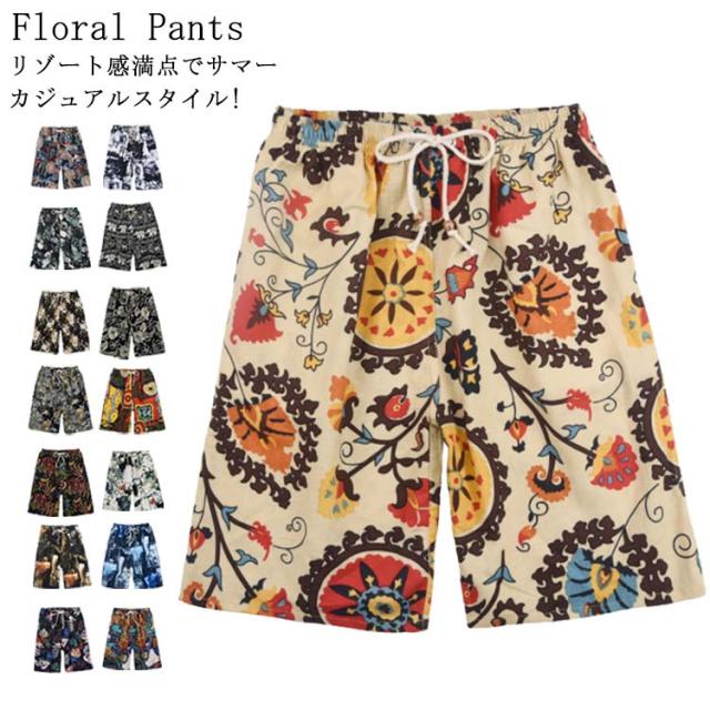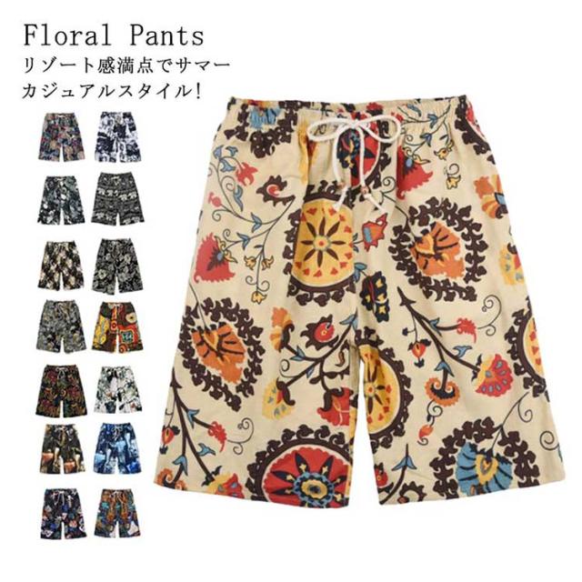 花柄 ショートパンツ ハーフパンツ メンズ リネン パンツ 5分丈 パンツ 綿麻 パンツ 花柄パンツ 綿麻 リネン リネンパンツ リネン ショーツ ショーパン 綿麻ショーツ 海パン サーフパンツ 海水パンツ ルームウェア