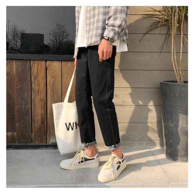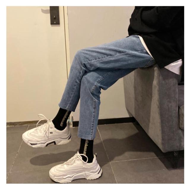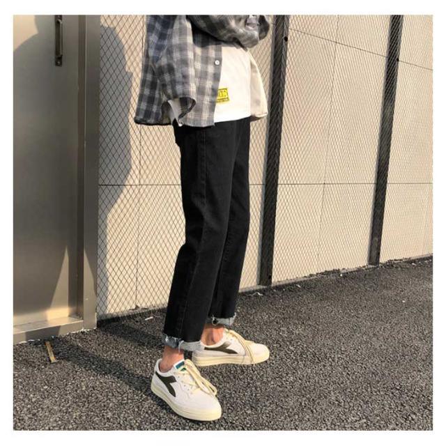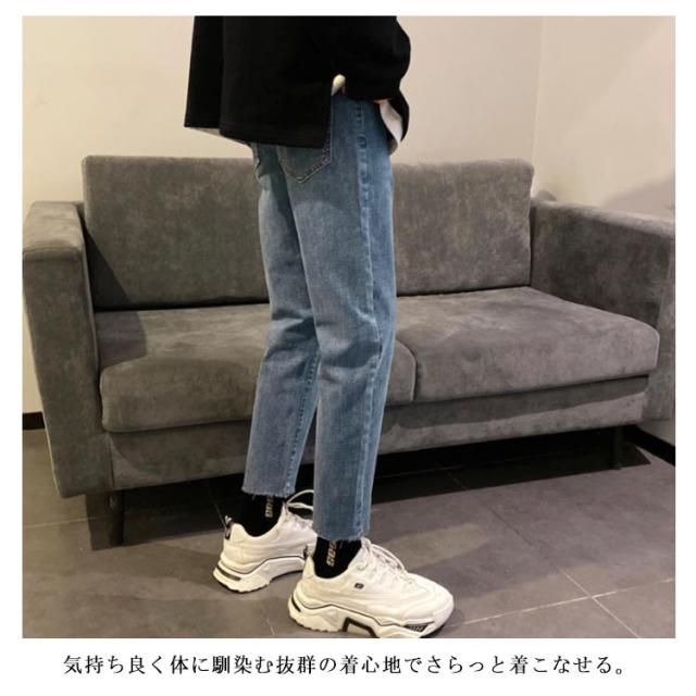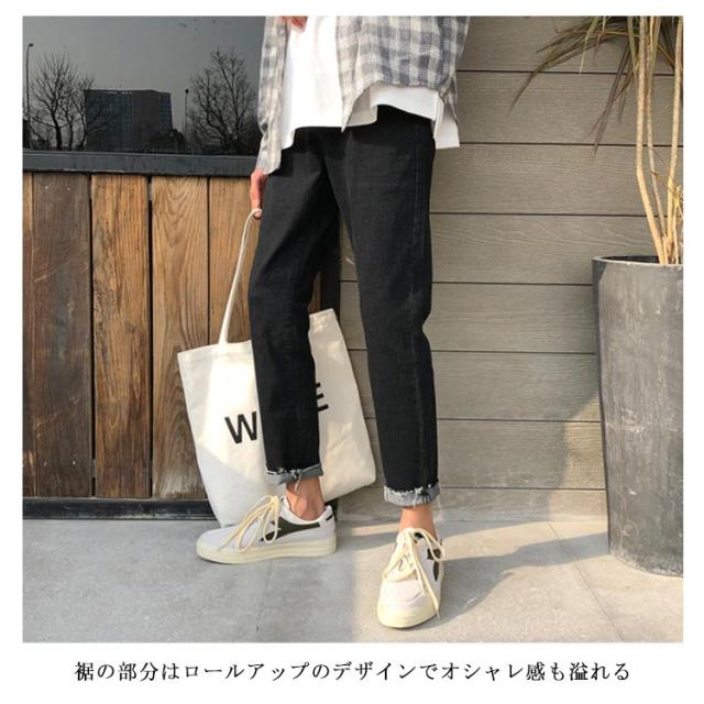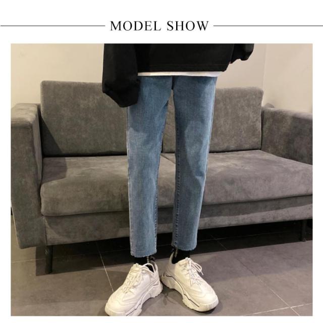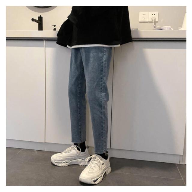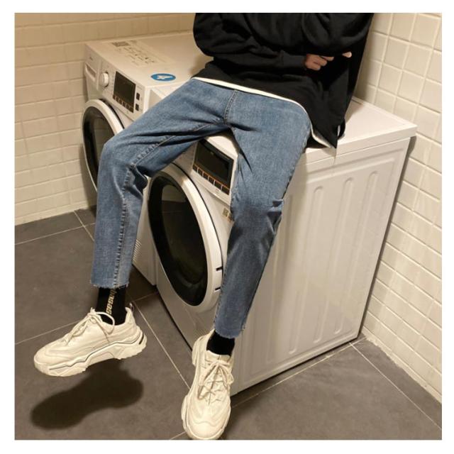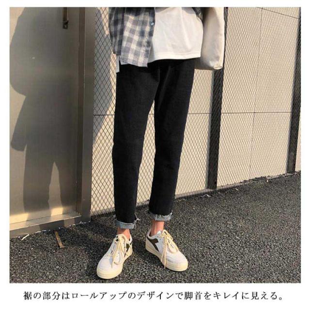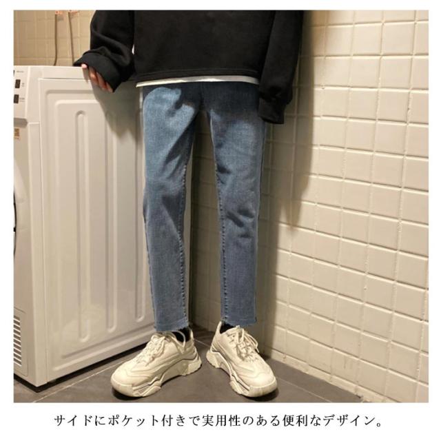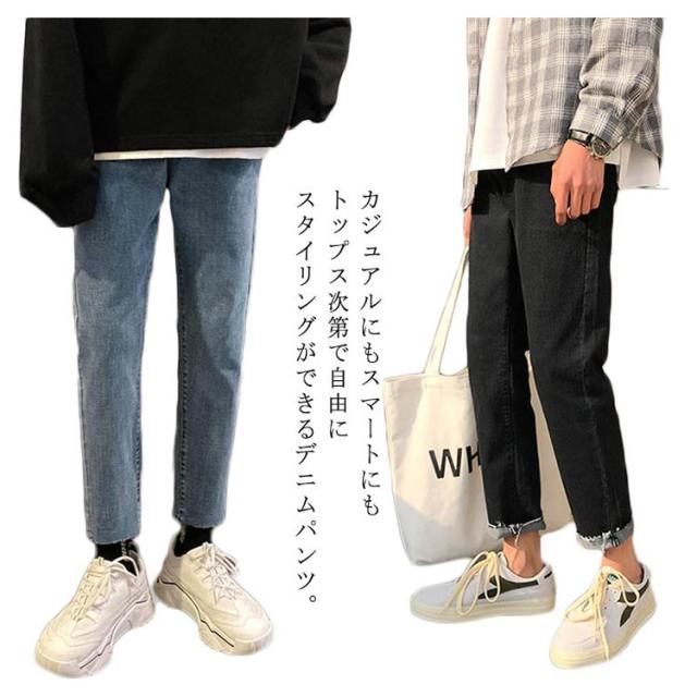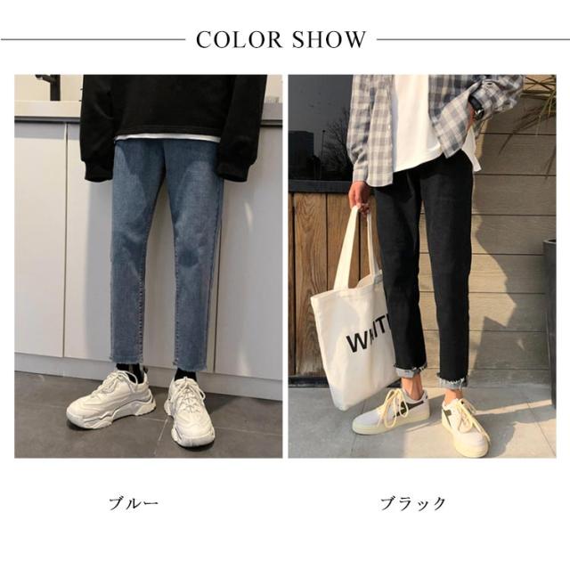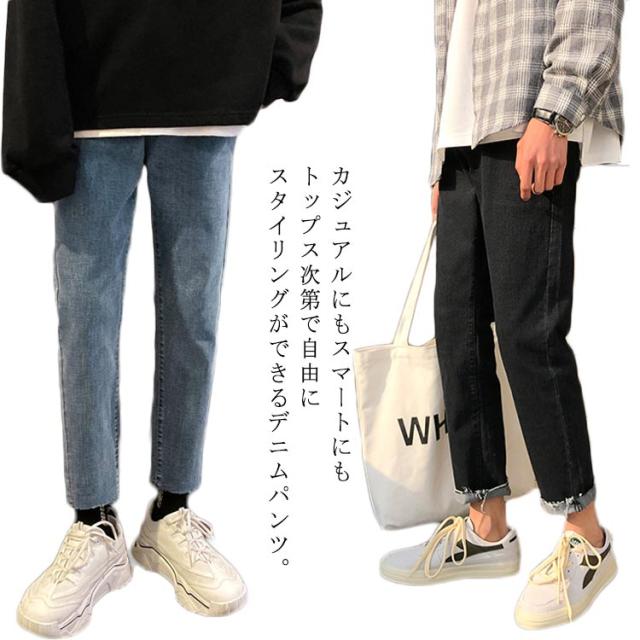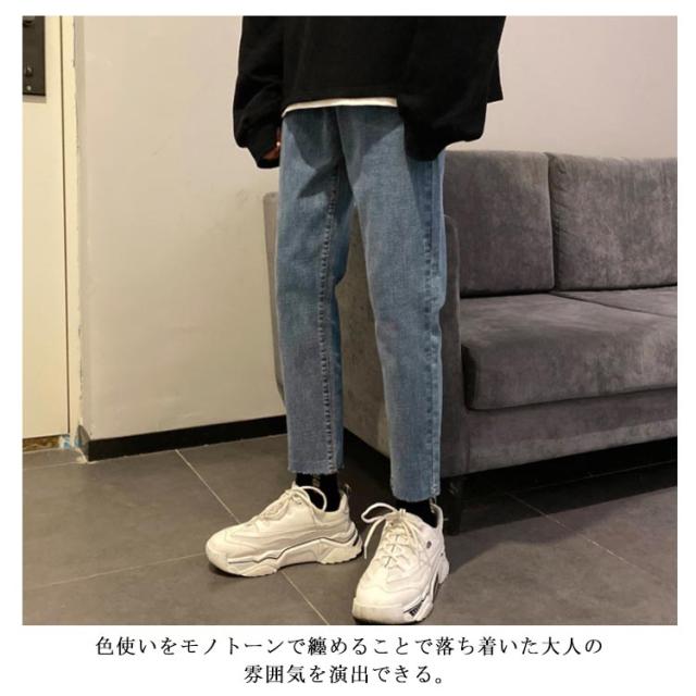 デニムパンツ ロングパンツ メンズ 九分丈 ジーンズ アンクルパンツ テーパード 裾カット スキニーパンツ ウォッシュ ジーパン 無地 おしゃれ カジュアル ボトムス ベーシック